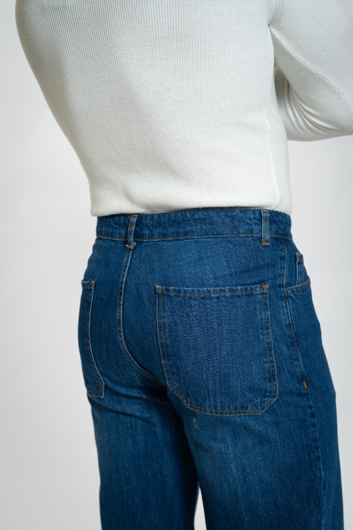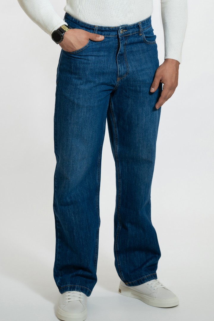 Pantaloni de barbati din denim Baggy cu fermoar și nasture.