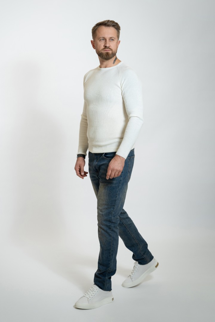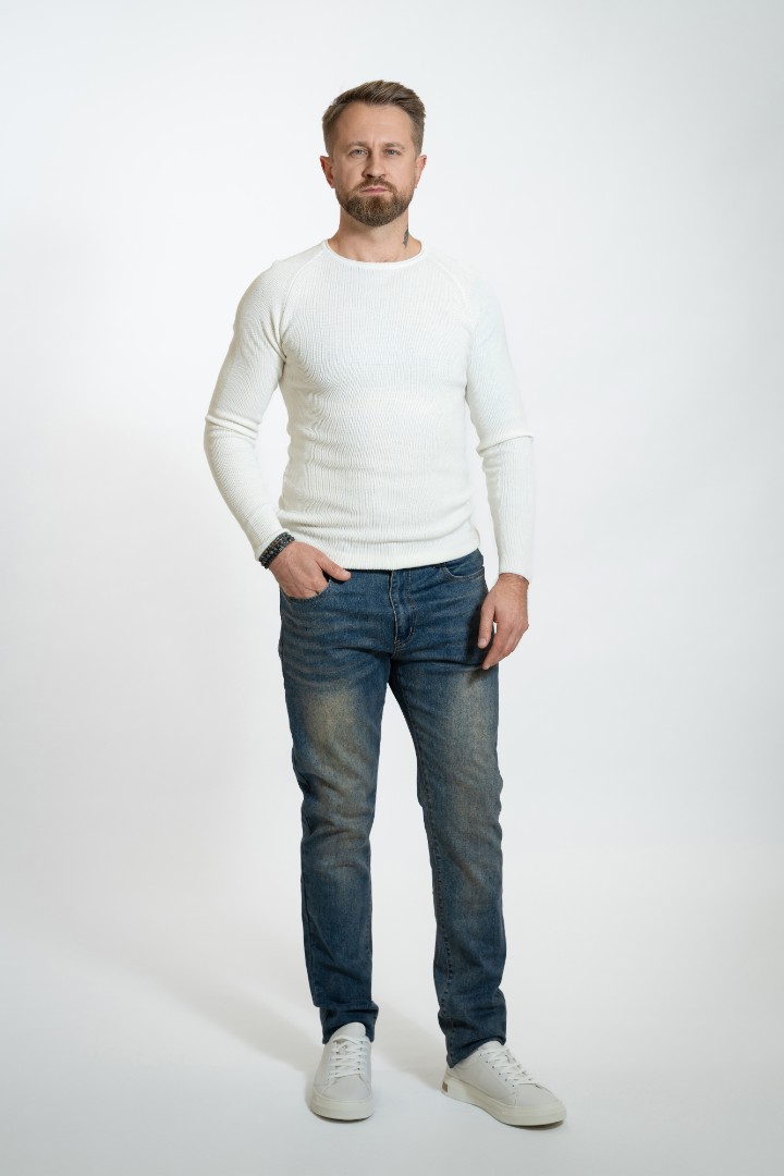 Pantaloni de barbati din denim Slim cu fermoar și nasture.