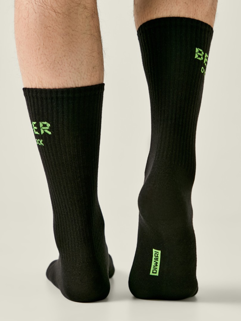 Șosete DIWARI ACTIVE 219 - inscripție ironică „BUNĂ SEARA, ȘI NU SUNT” pentru a stabili starea de spirit. Practicitate și umor într-o singură pereche. Tehnologie fără cusături Impregnare antibacteriană Culoare: alb - alegerea universală Ideal pentru stilul informal.