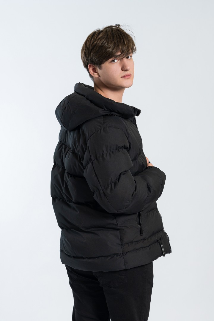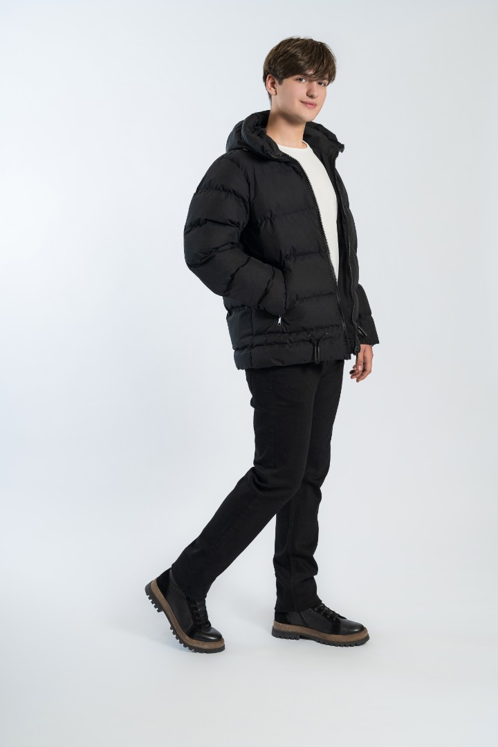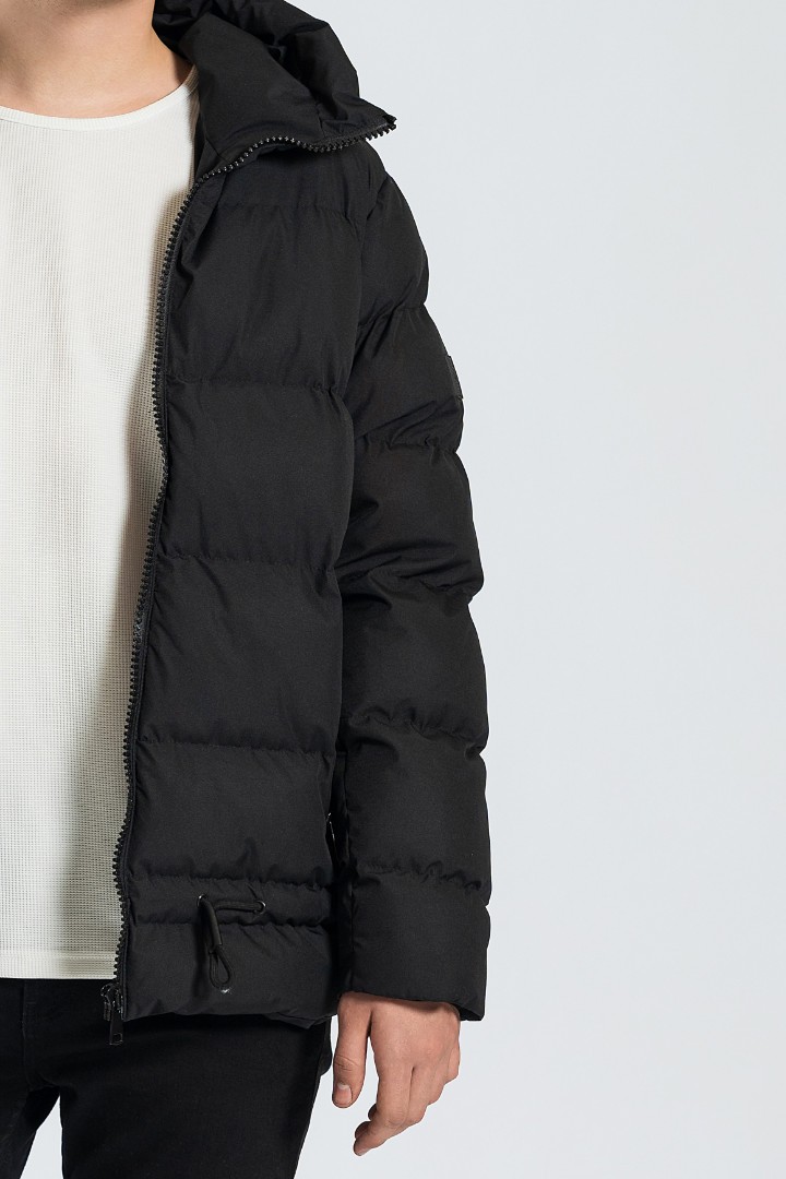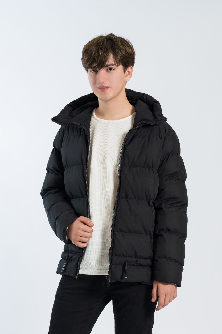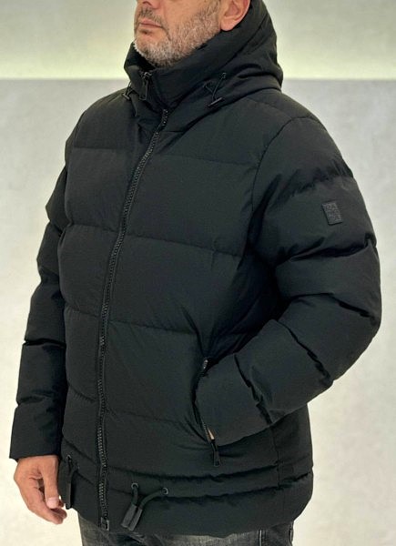 Jachetă de bărbați cu fermoar, glugă și buzunare cu fermoar. Gluga și tivul sunt ajustabile pentru a preveni pătrunderea vântului. Toamnă-Iarnă.