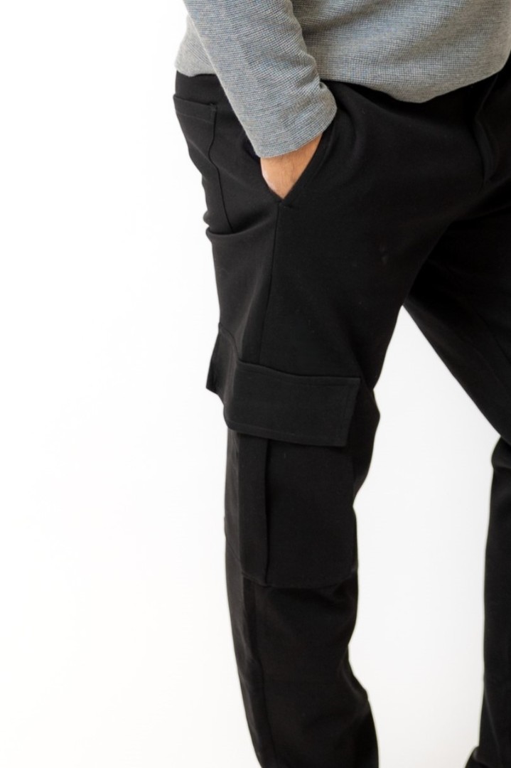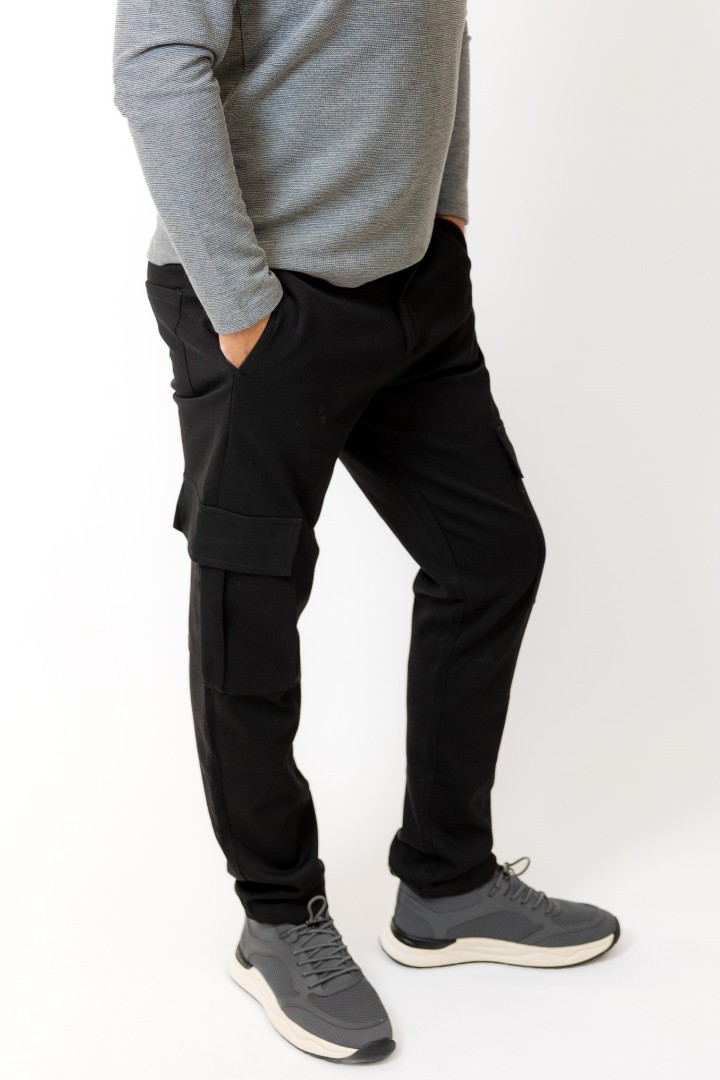 Pantaloni pentru bărbați cu fermoar și buzunare laterale.