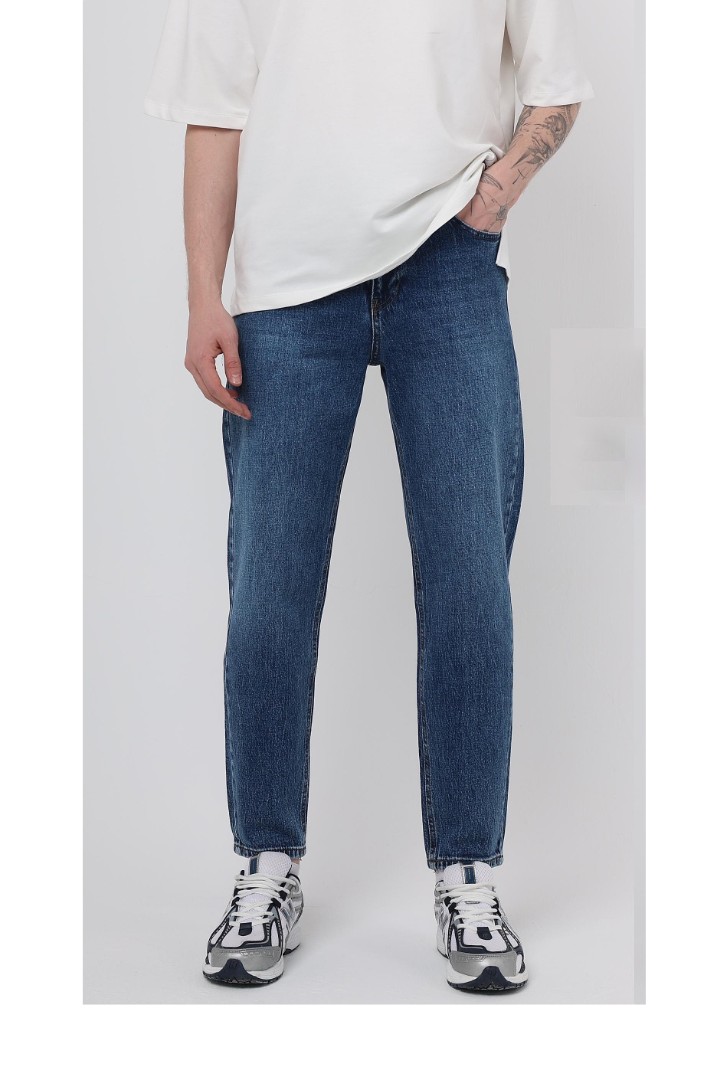 Pantaloni de barbati din denim Boyfriend cu fermoar și nasture.