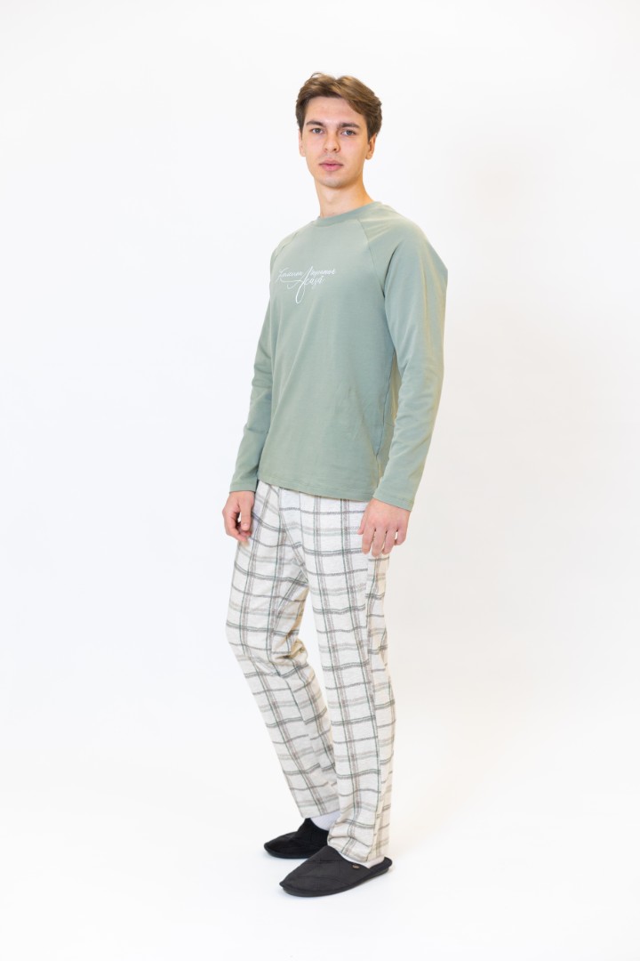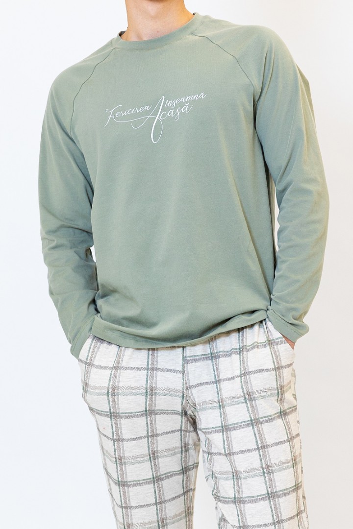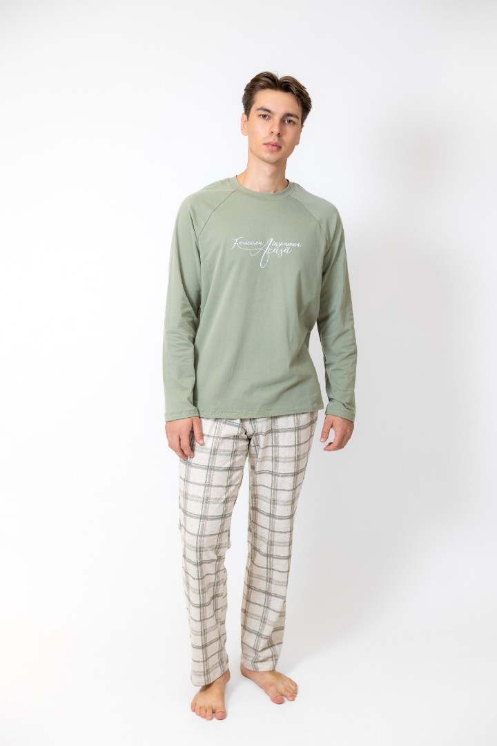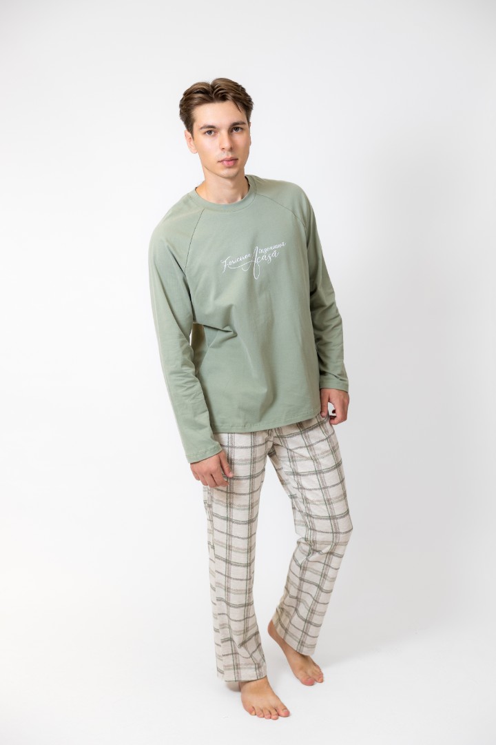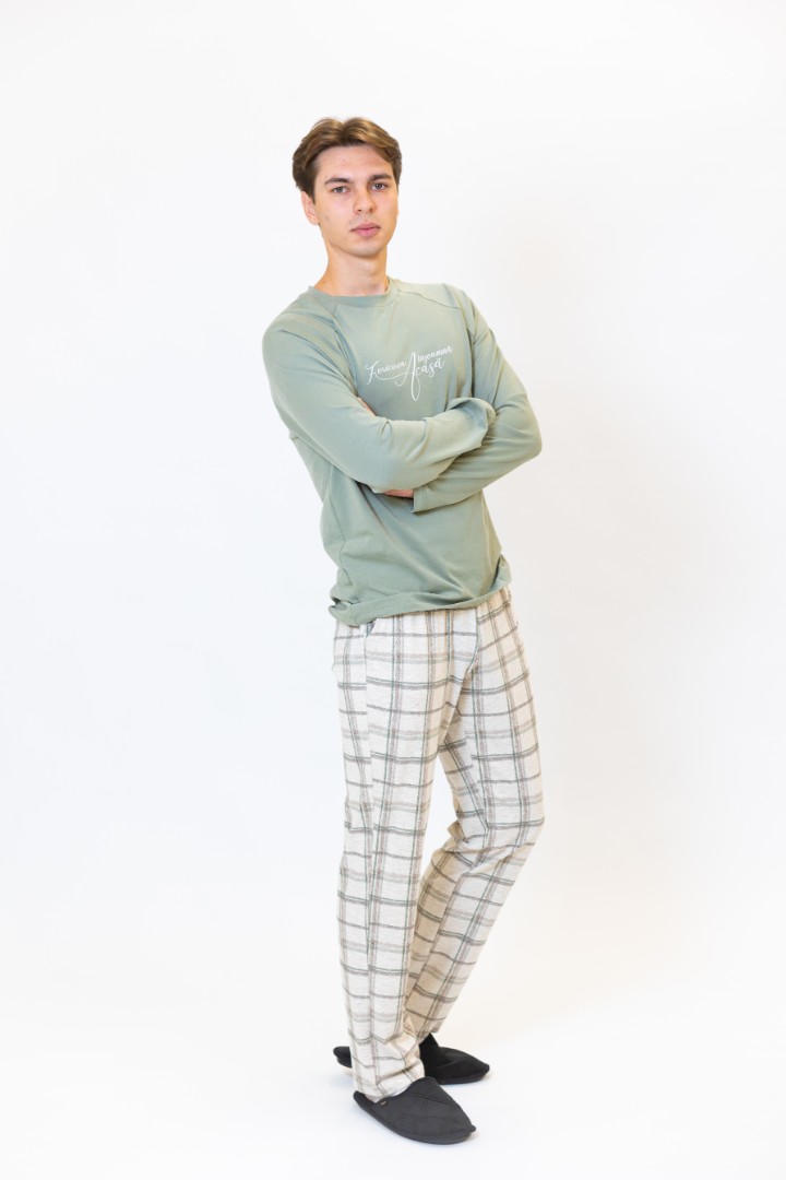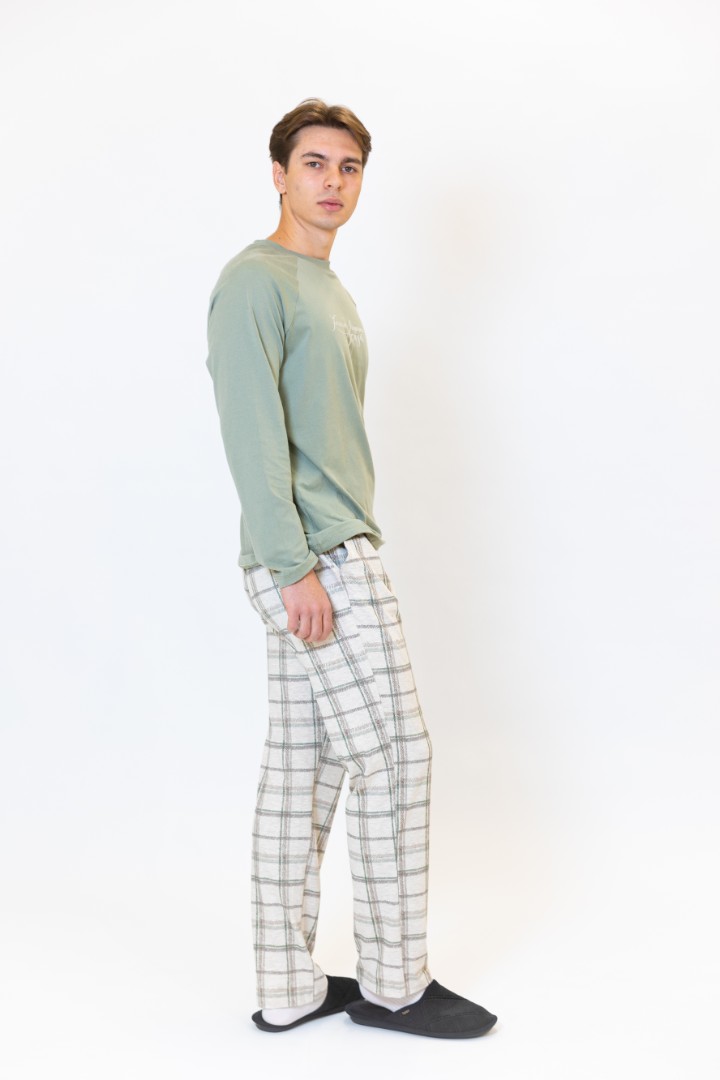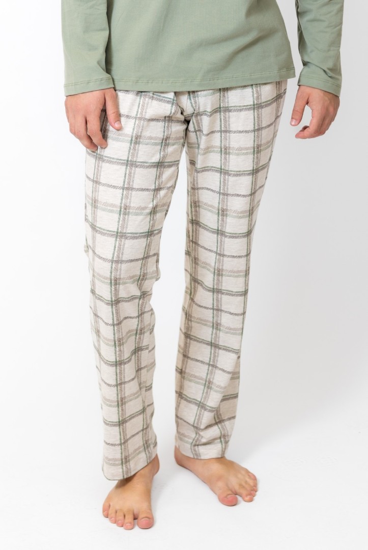 Tagaer Ajoure Pijama-pantaloni barbati T78016 Haki-print carou