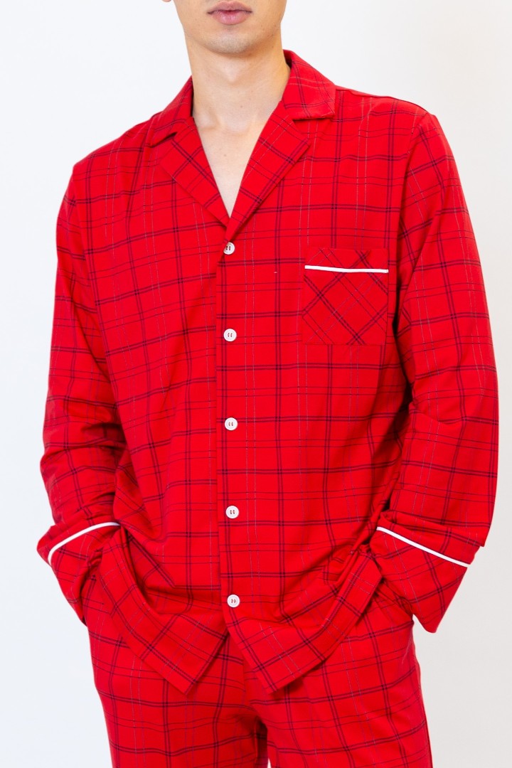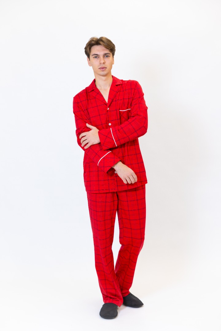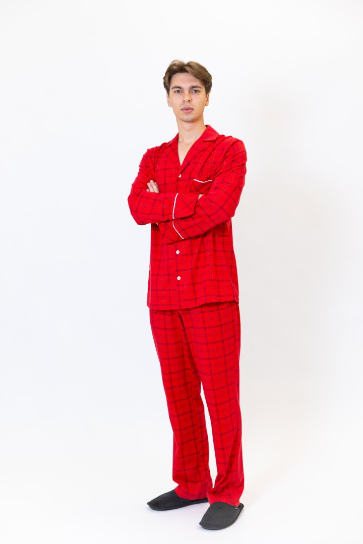 Tagaer Ajoure Pijama-pantaloni barbati T78017 Rosu print carouri