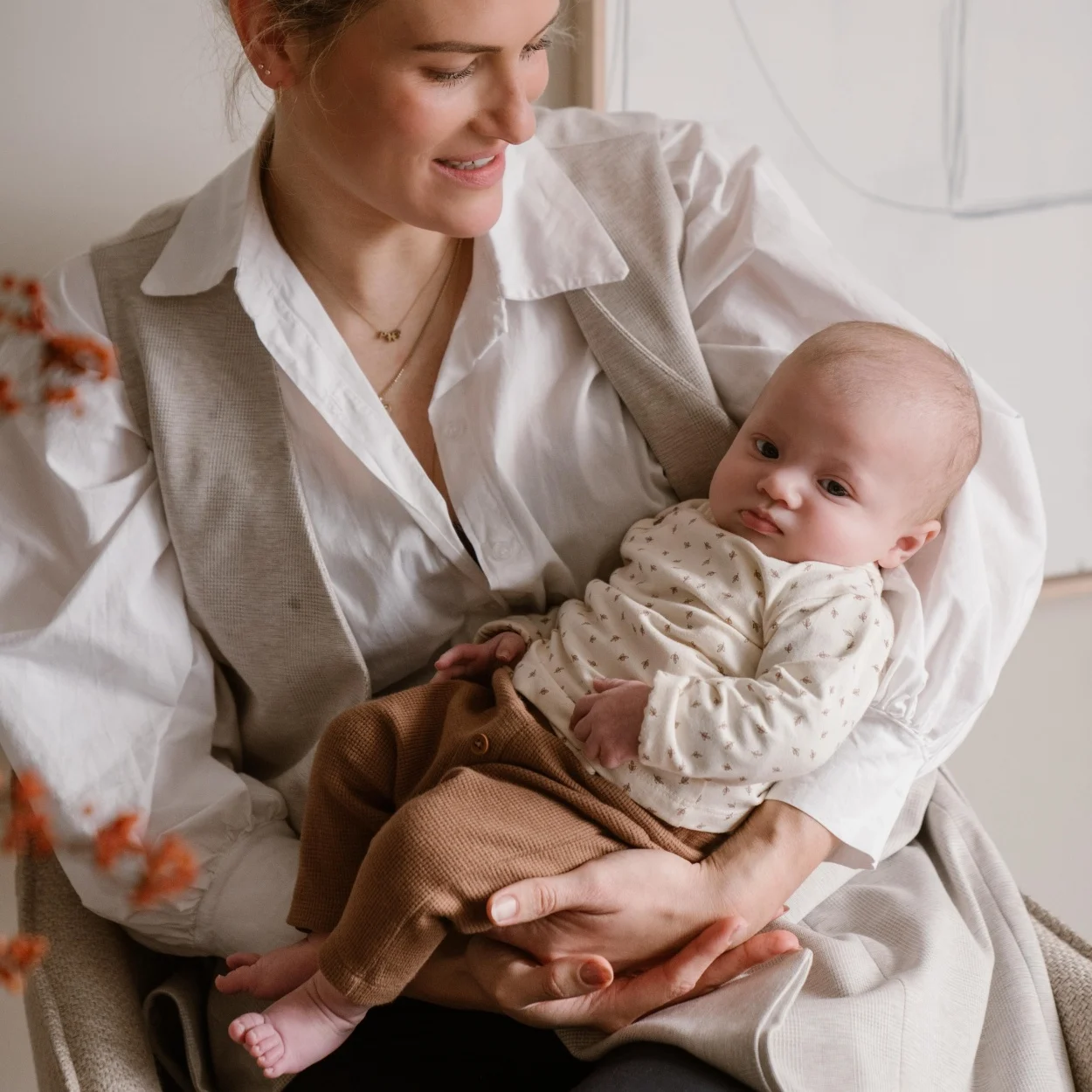Pantaloni minunați sunt confecționați dintr-un bumbac organic moale, elastic, minunat de confortabili. Pantalonii în nuanță maro sunt confecționați dintr-un material texturat care îi face și mai drăguți. Hainele pentru bebeluși din bumbac organic sunt alegerea ideală pentru părinții care își doresc ce e mai bun pentru bebelușii lor.