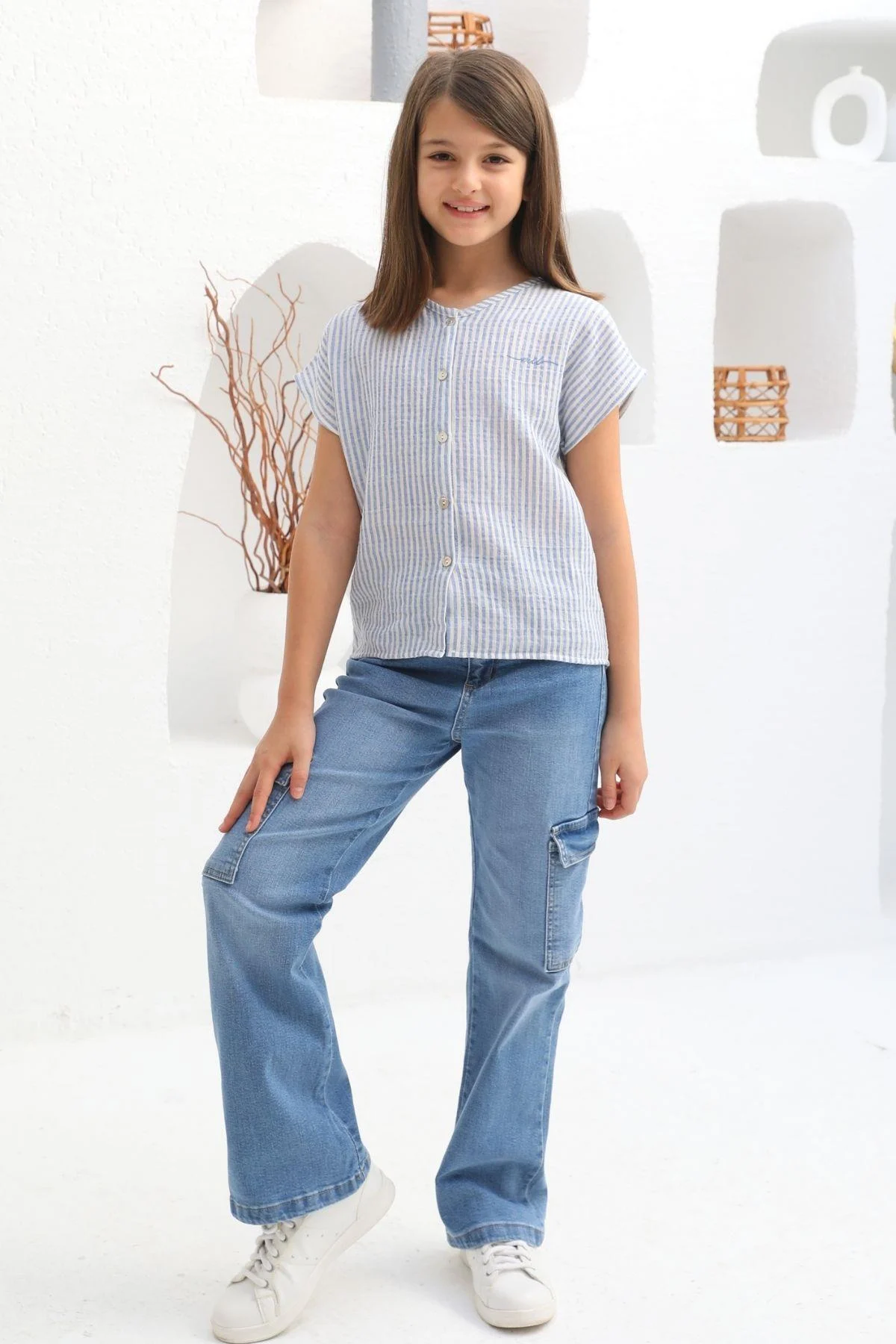 Mutlu Pantaloni denim fete 151-1313.1 Albastru deschis