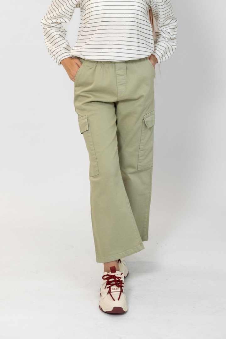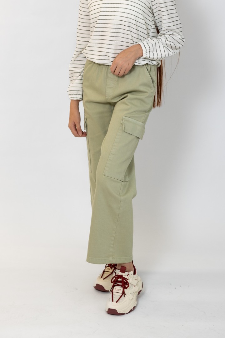 Pantaloni pentru fete cu buzunare laterale și elastic în talie.