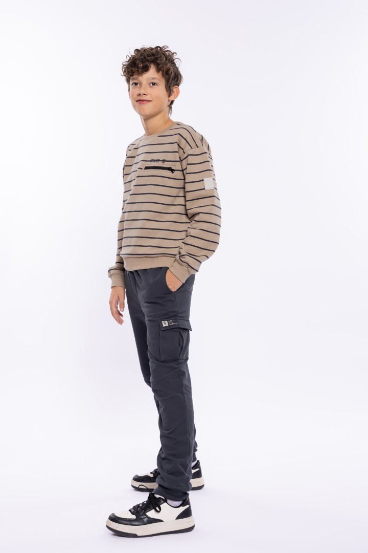 Pantalonii jogging de culoare antracit sunt foarte recomandați pentru băieții cool care vor să se simtă confortabil și să arate stilat pe parcursul zilei. Pantalonii pentru băieți sunt în stil cargo, cu un buzunar lateral cool. Confecționați din bumbac 100%, pantalonii sunt moi la atingere și sunt ideali pentru toamnă și iarnă.