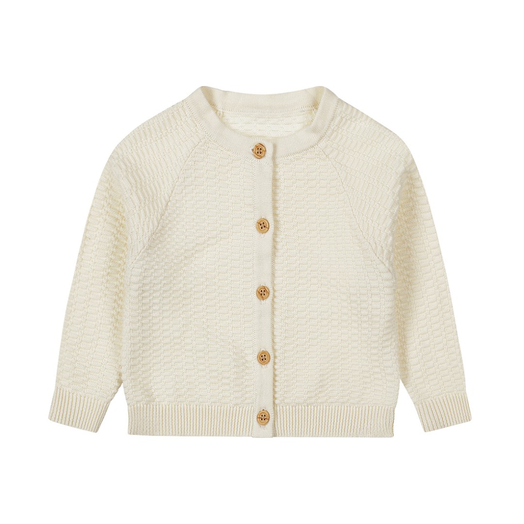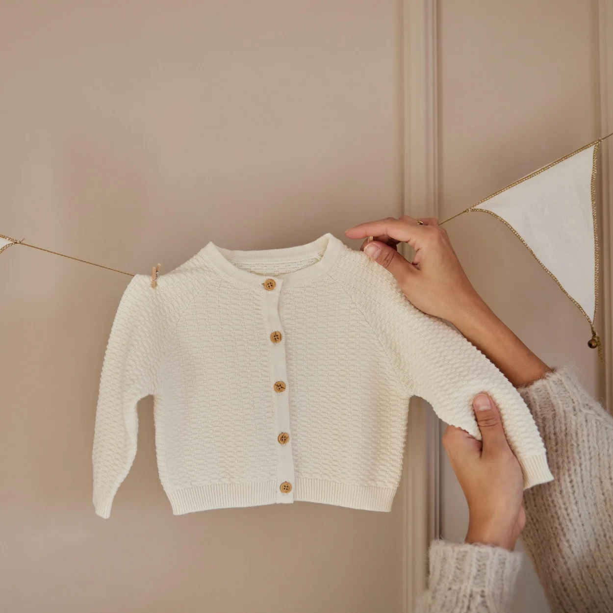 Cardiganul este alb-gălbui și este confecționat din bumbac organic moale. Structura fină a materialului face ca acest cardigan să fie și mai frumos. Hainele pentru bebeluși din bumbac organic sunt alegerea ideală pentru părinții care își doresc ce e mai bun pentru bebelușii lor. Fabricate din bumbac cultivat organic, aceste haine sunt moi, confortabile și sigure pentru pielea sensibilă a bebelușilor. În plus, contribuie la o planetă mai sănătoasă prin practici de creștere sustenabile și ecologice. Alege bumbacul organic pentru a-ți răsfăța bebelușul și a proteja lumea.