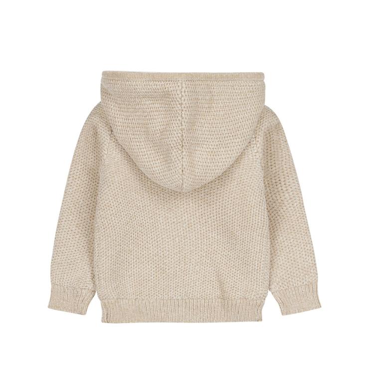 Confortabil, înfășurat în zilele reci! Acest cardigan pentru exterior, într-o frumoasă culoare bej-gri, este perfect pentru toamnă și iarnă. Exteriorul cardiganului pentru fete este confecționat din chenille minunat de moale, în timp ce căptușeala interioară moale oferă căldură și confort suplimentar. Datorită glugii și fermoarului convenabil, acest cardigan gri nu este doar călduros, ci și practic pentru a fi purtat în deplasare sau în aer liber. Un articol ideal pentru a-ți menține fetița caldă și elegantă în zilele reci!