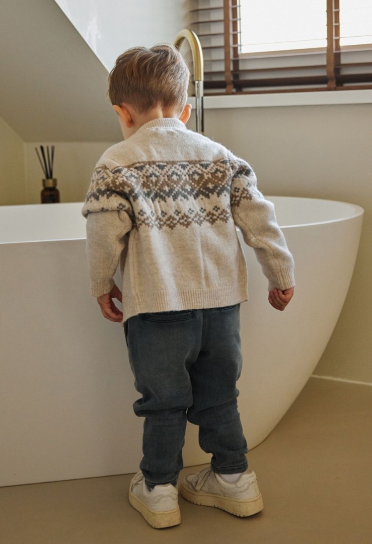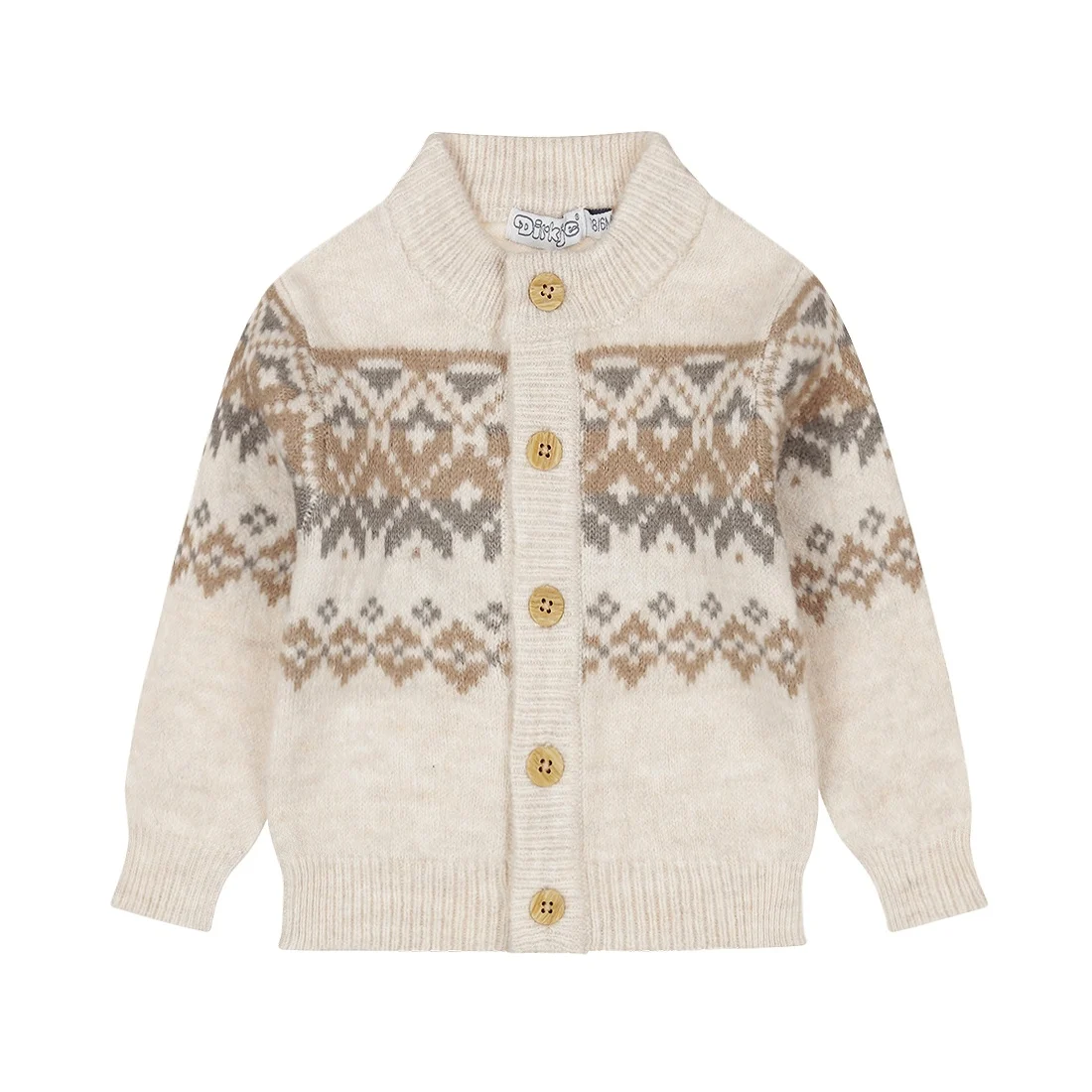 Adu un plus de căldură și confort iernii cu acest cardigan cool pentru băieți! Acest cardigan tricotat de la Dirkje are o culoare deschisă și un frumos imprimeu norvegian, perfect pentru sezonul de iarnă. Fabricat din materiale moi, acest cardigan oferă nu doar căldură, ci și mult confort. Este ideal pentru a-l menține pe micuțul tău elegant și călduros în timpul lunilor de iarnă. Perfect de combinat cu alte articole din colecția Dirkje pentru un look complet.