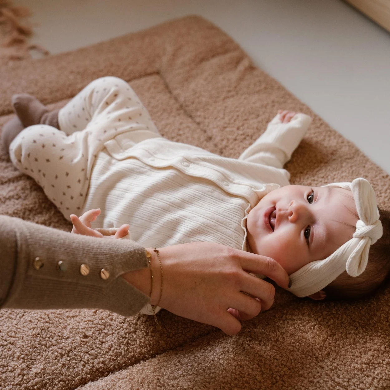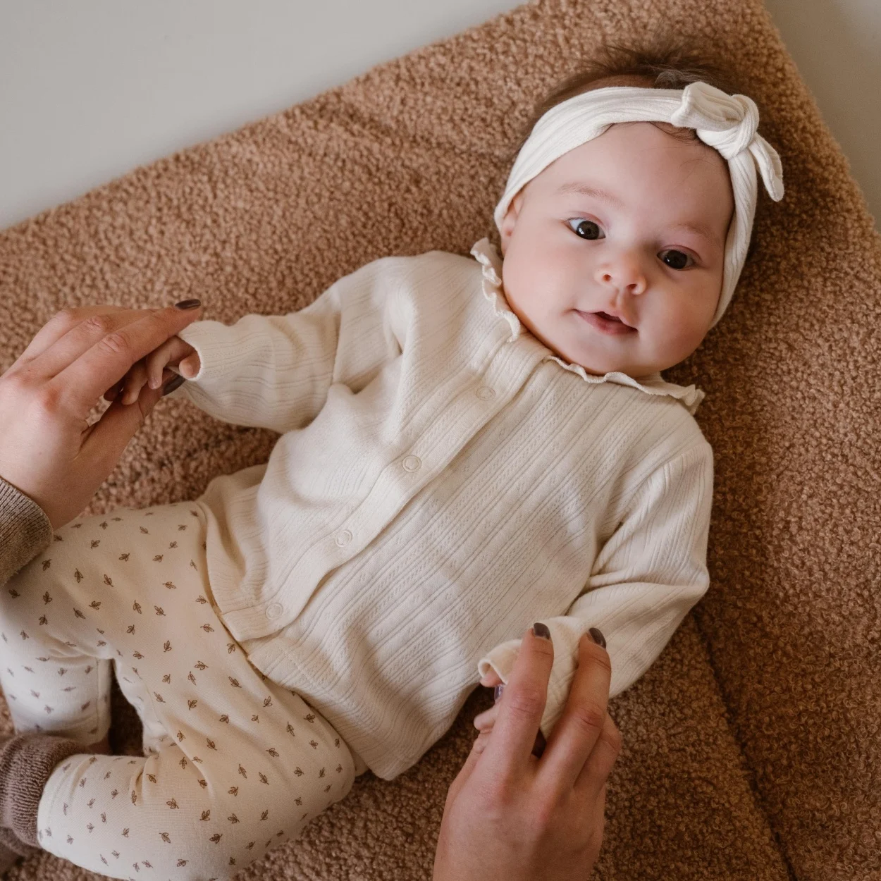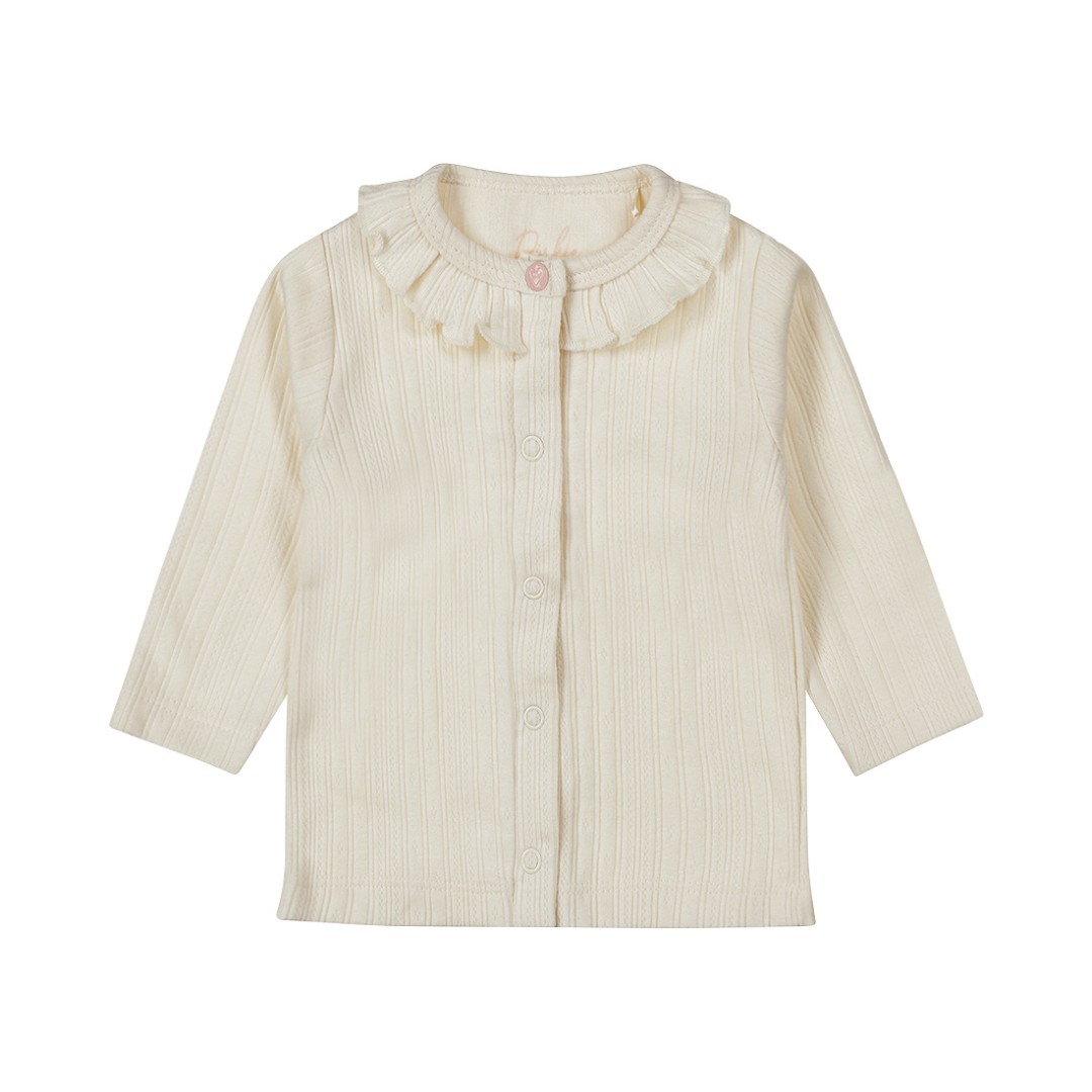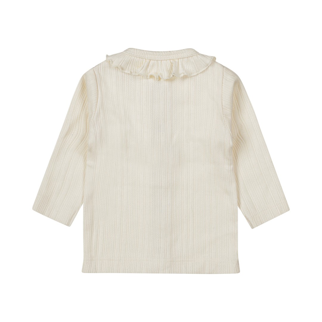 Acest cardigan drăguț de la Dirkje nu ar trebui să lipsească din garderoba micuței tale. Cardiganul alb-gălbui pentru fetițe este confecționat dintr-un bumbac organic moale. Prezintă detalii frumoase, cum ar fi un guler drăguț și textura fină a materialului. Cardiganul ecru se închide cu capse în față. Hainele pentru bebeluși din bumbac organic sunt alegerea ideală pentru părinții care își doresc ce e mai bun pentru bebelușii lor. Fabricate din bumbac cultivat organic, aceste haine sunt moi, confortabile și sigure pentru pielea sensibilă a bebelușilor.