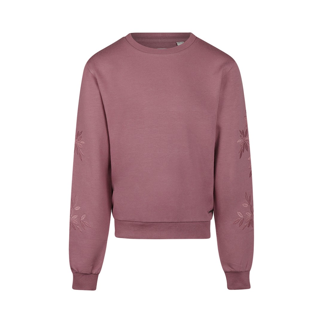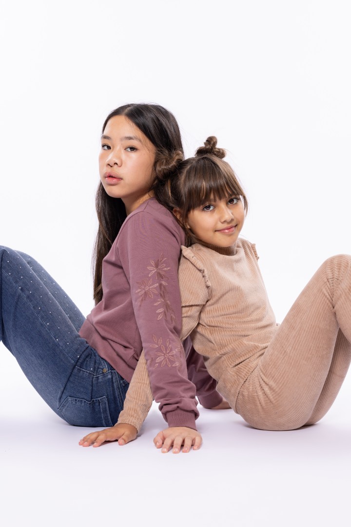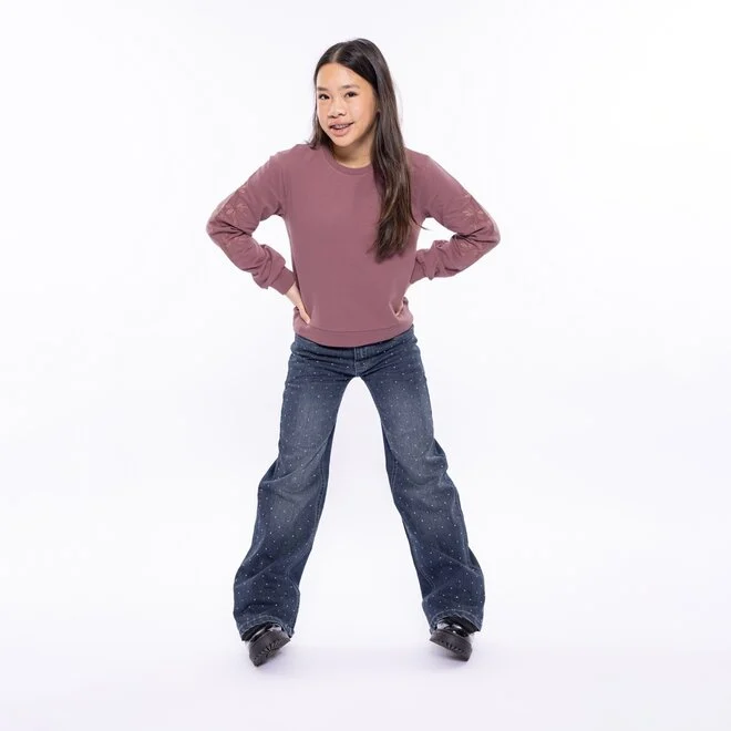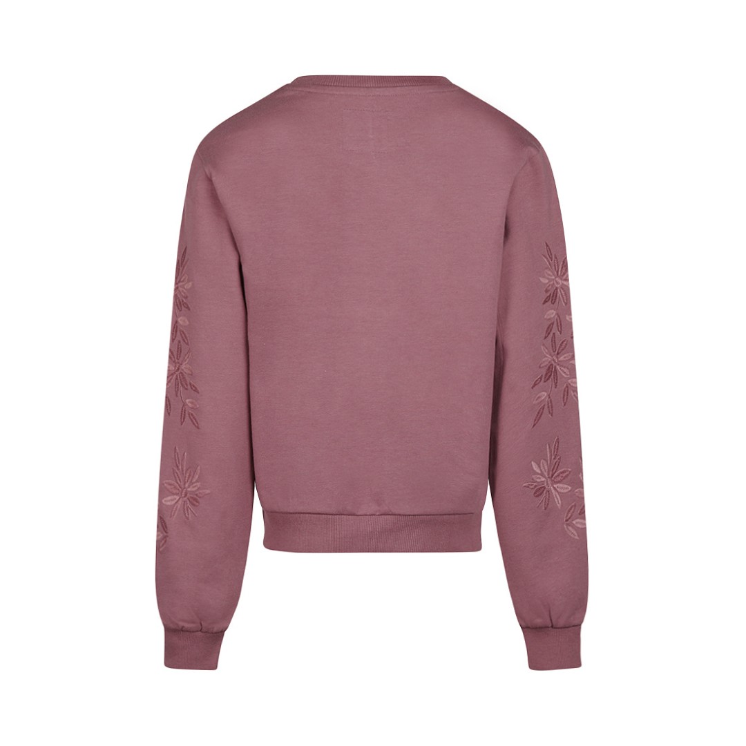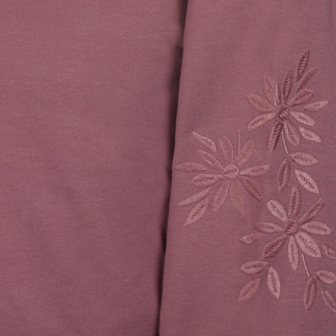 Puloverul violet pentru fete se remarcă prin florile brodate pe mâneci - un detaliu subtil cu un efect deosebit. Puloverul este confecționat din bumbac moale, cu o doză fină de elasticitate, și are o croială lejeră, care se potrivește perfect. Un adevărat favorit pentru zilele reci, acest pulover se asortează ușor cu blugi sau fuste.