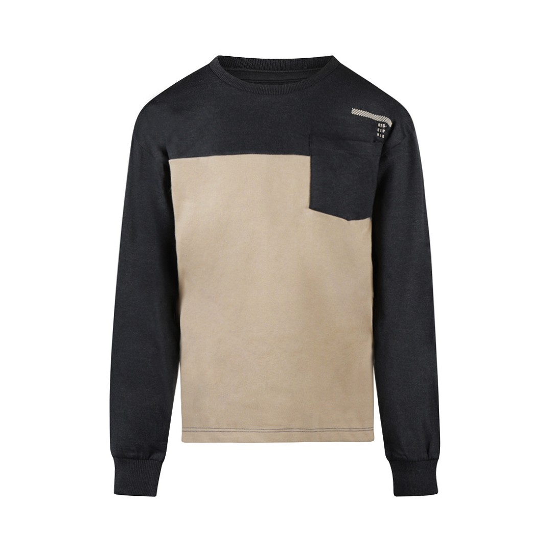 Bluza cu mâneci lungi este alegerea ideală pentru zilele răcoroase. Această bluză cu mâneci lungi pentru băieți are o croială lejeră datorită umerilor coborâți. Culoarea albă murdară cu partea superioară antracit conferă bluzei cu mâneci lungi un aspect cool, completat de un buzunar piept cool.