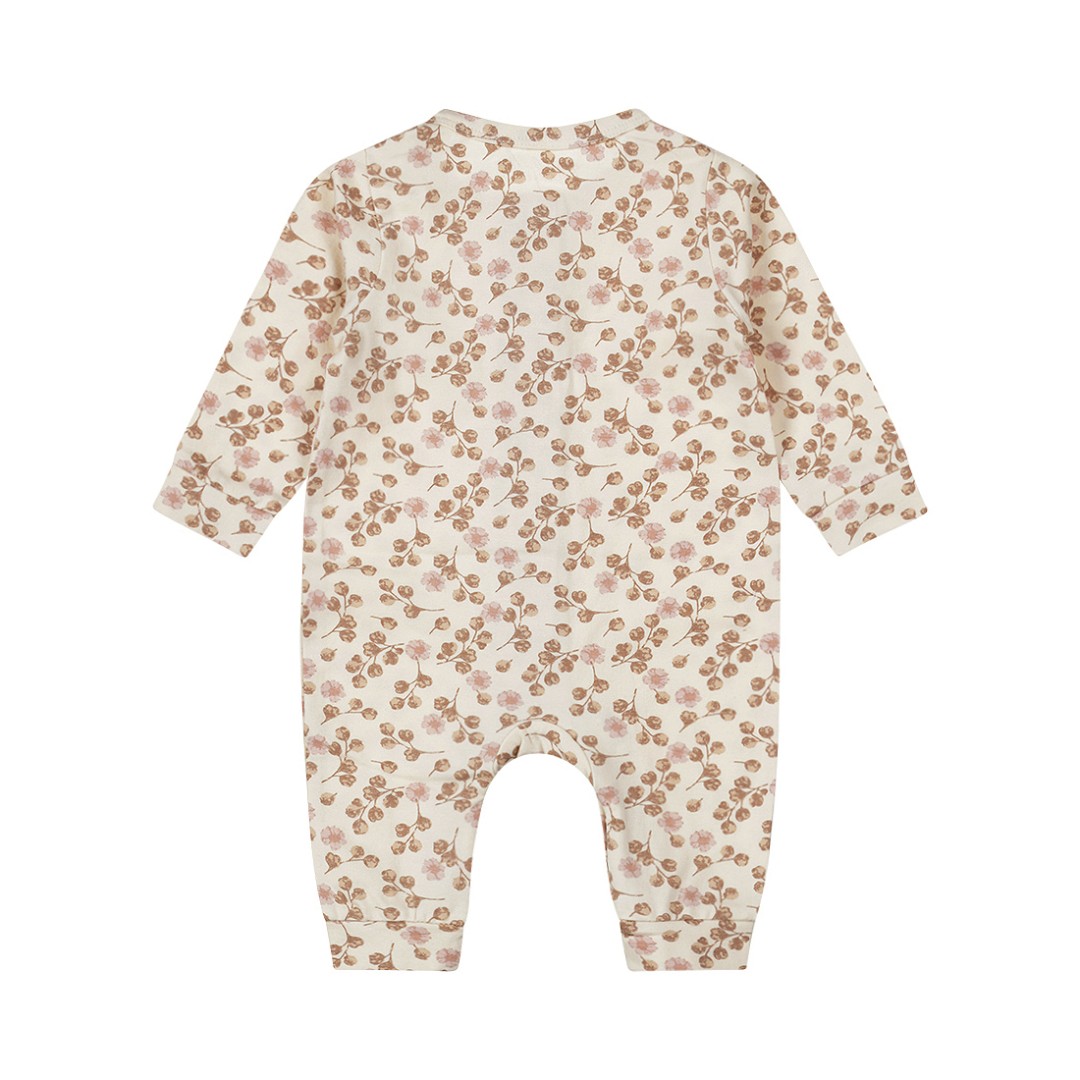 Această salopetă frumoasă de culoare ecru de la Dirkje este confecționată din bumbac moale, ecologic, cu adaos de elastan, ceea ce o face incredibil de confortabilă. Salopeta pentru copii cu mâneci lungi are culoarea fildeșului și este decorată cu un imprimeu floral fermecător în nuanțe de maro și roz. Salopeta se închide cu nasturi în față și la picioare. Datorită acestui fapt, salopeta este ușor de îmbrăcat și de dezbrăcat.
