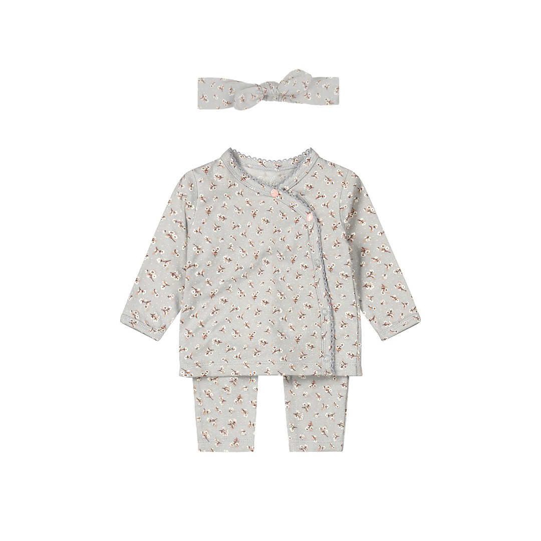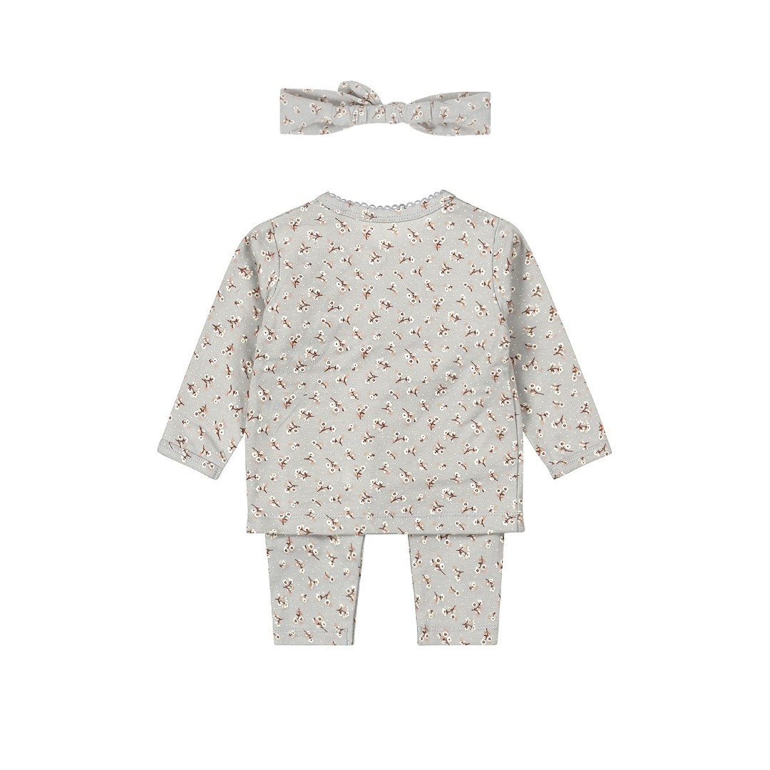 Acest set drăguț pentru fete de la Dirkje este format dintr-o cămașă cu mâneci lungi, pantaloni și o bandă pentru păr, confecționate din bumbac organic moale cu adaos de elastan. Foarte confortabil pentru micuța ta. Cămașă cu mâneci lungi pentru fete, de culoare albastru deschis, cu un imprimeu drăguț. Închiderea suprapusă permite îmbrăcarea și dezbrăcarea ușoară a copilului. Pantalonii de culoare albastru deschis, cu imprimeu, au o bandă elastică largă în talie pentru o potrivire confortabilă. Desigur, talia poate fi ușor întoarsă. Completează ținuta micuței tale cu o bandană potrivită, cu fundă. Hainele pentru copii din bumbac organic sunt alegerea ideală pentru părinții care doresc ce este mai bun pentru copiii lor. Aceste haine, confecționate din bumbac cultivat organic, sunt moi, confortabile și sigure pentru pielea sensibilă a copiilor. În plus, contribuie la îmbunătățirea stării planetei datorită metodelor de cultivare durabile și ecologice. Alegeți bumbacul organic pentru a vă răsfăța copilul și a proteja lumea.