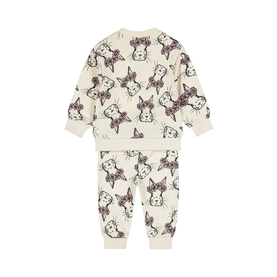 Cu acest set încântător, micuțul tău va putea petrece întreaga zi în confort! Acest set Dirkje de culoare bej este format dintr-un pulover moale pentru fetițe și pantaloni sport asortați, ambele articole fiind confecționate din bumbac cu adaos de elastan pentru o libertate de mișcare suplimentară. Imprimeul cu iepurași drăguți aplicat pe toată suprafața face acest set deosebit de vesel.