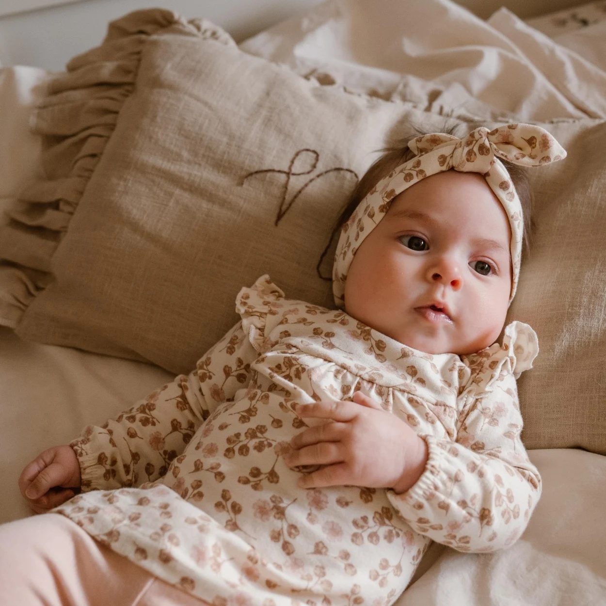 Raza ta mică de fericire într-o rochie fermecătoare. Acest set drăguț constă dintr-o rochie cu chilot și bandaj de păr din bumbac organic moale cu elastan. Rochia este albă și are o imprimare drăguță, cu culori frumoase, în tonuri de maro și roz. Rochia are mâneci lungi și volane dragute pe umeri. Se închide prin apăsarea pe umăr. Colanți roz și un bandaj de păr completează imaginea. Îmbrăcămintea din bumbac organic este o alegere ideală pentru părinții care doresc ce este mai bun pentru copiii lor. Fabricat din bumbac organic, această îmbrăcăminte este moale, confortabilă și sigură pentru pielea sensibilă a copiilor. De asemenea, contribuie la o planetă mai sănătoasă prin metode agricole durabile și ecologice. Alege bumbacul organic pentru a-ți răsfăța copilul și a proteja lumea.