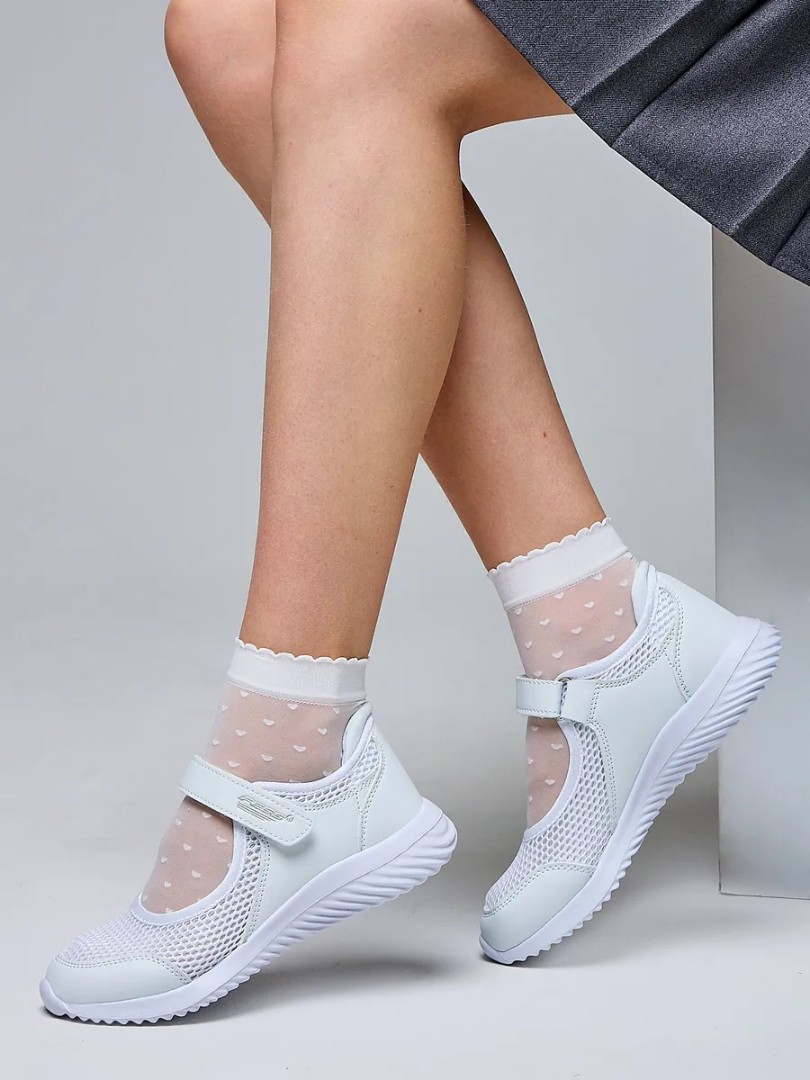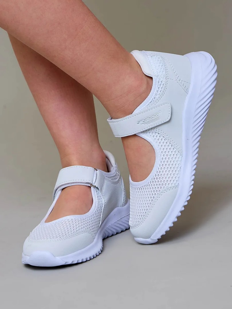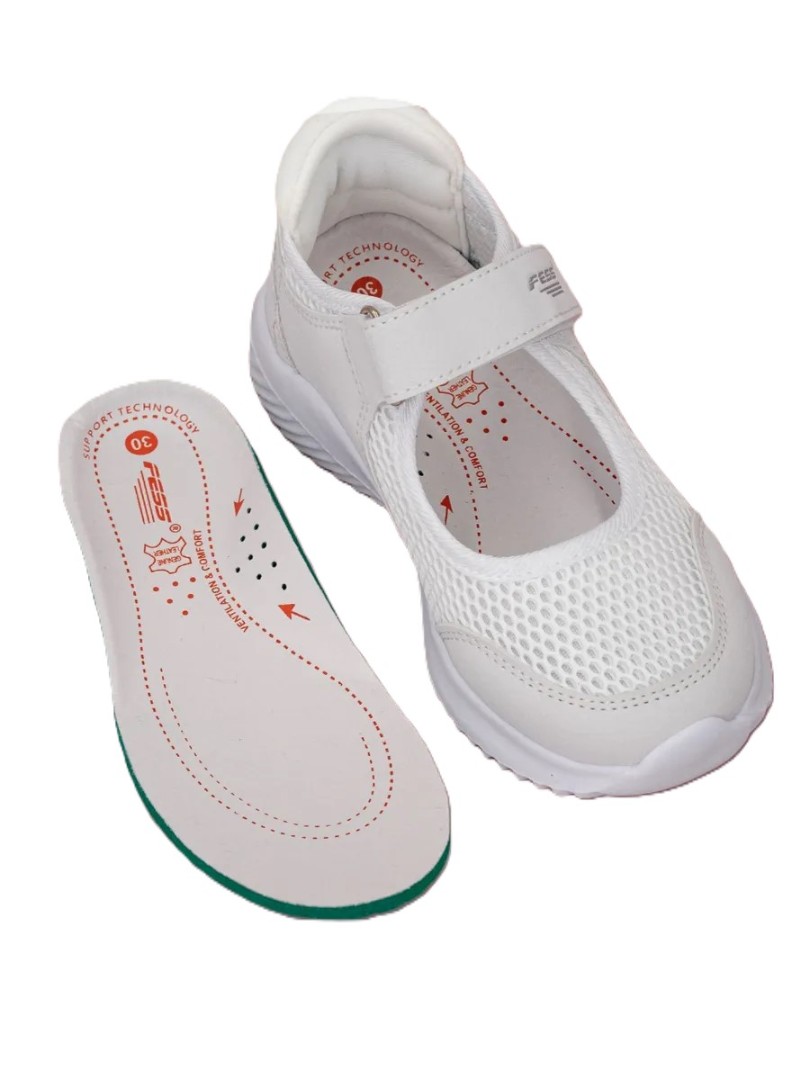 Pantofi ușori și confortabili, respirabili, cu perforații, confecționați din material textil de calitate și prevăzuți cu branț moale din piele naturală. Vârful închis și lipsa tocului garantează o talpă ușoară din EVA.