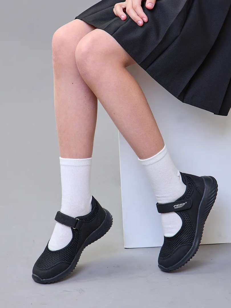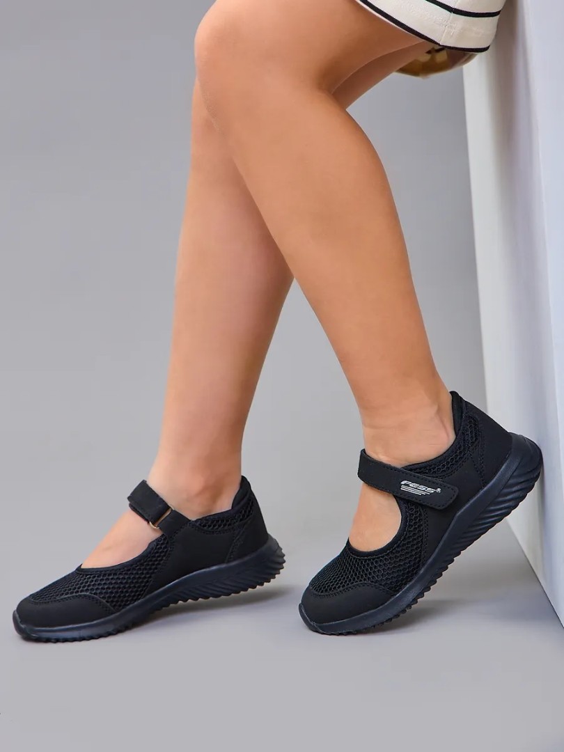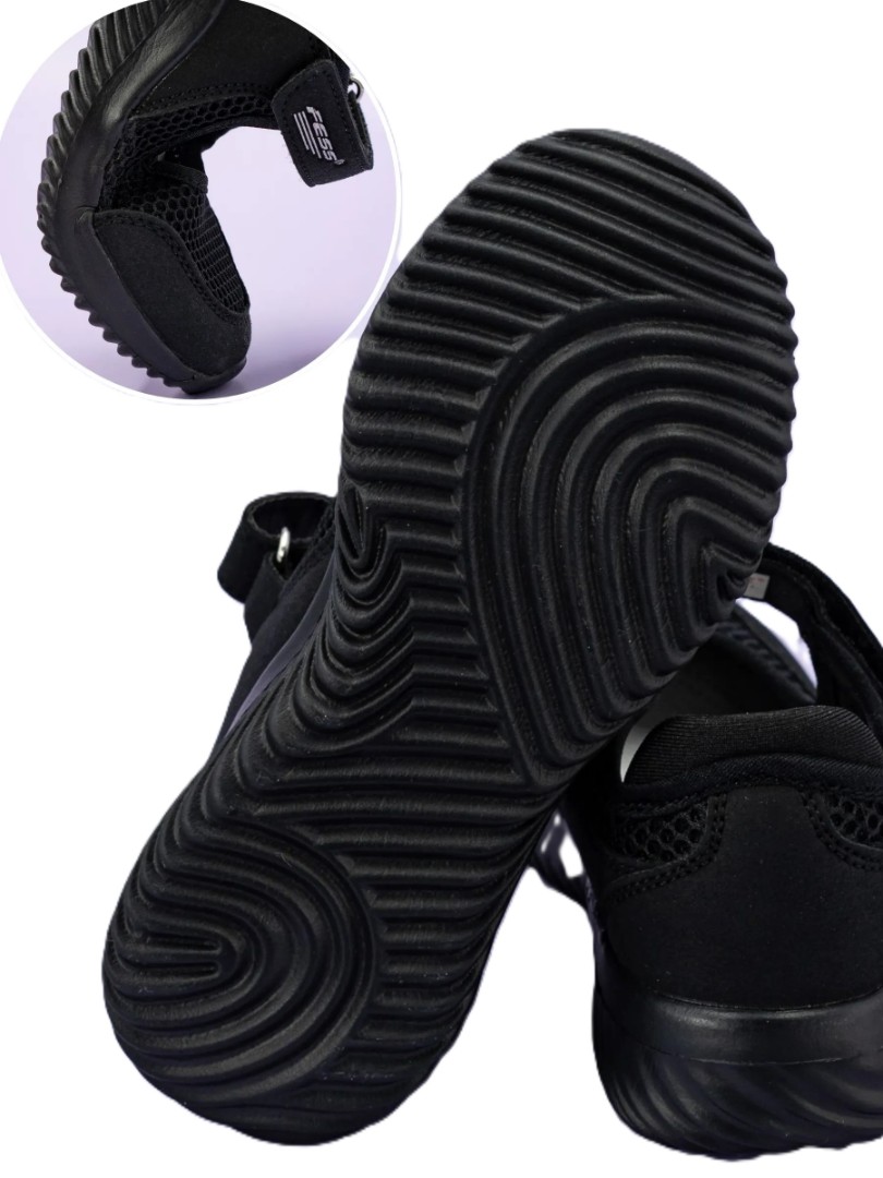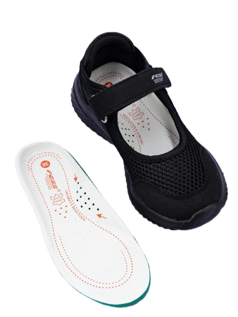 Pantofi ușori și confortabili, respirabili, cu perforații, confecționați din material textil de calitate și prevăzuți cu branț moale din piele naturală. Vârful închis și lipsa tocului garantează o talpă ușoară din EVA.