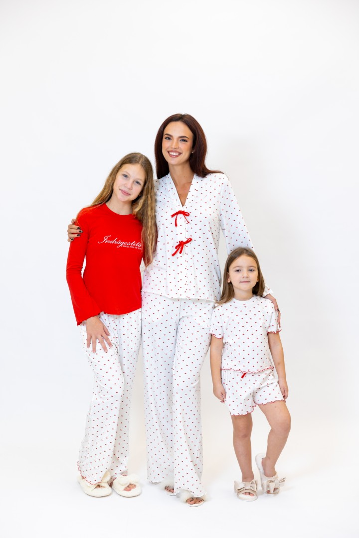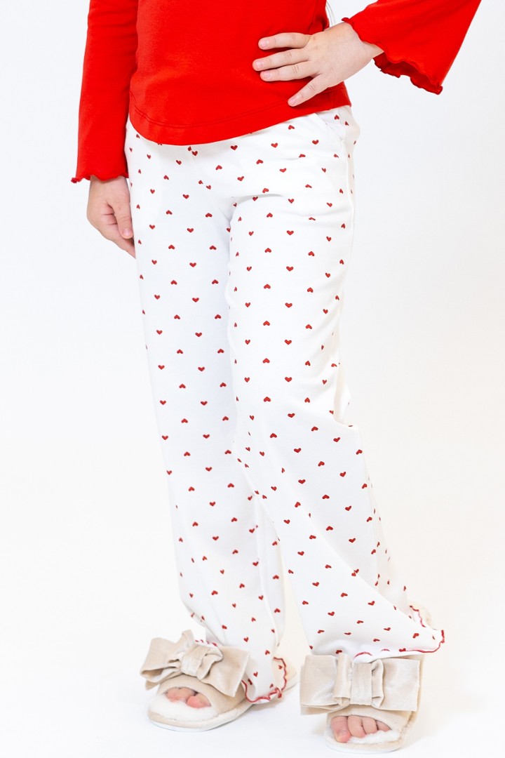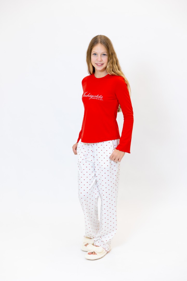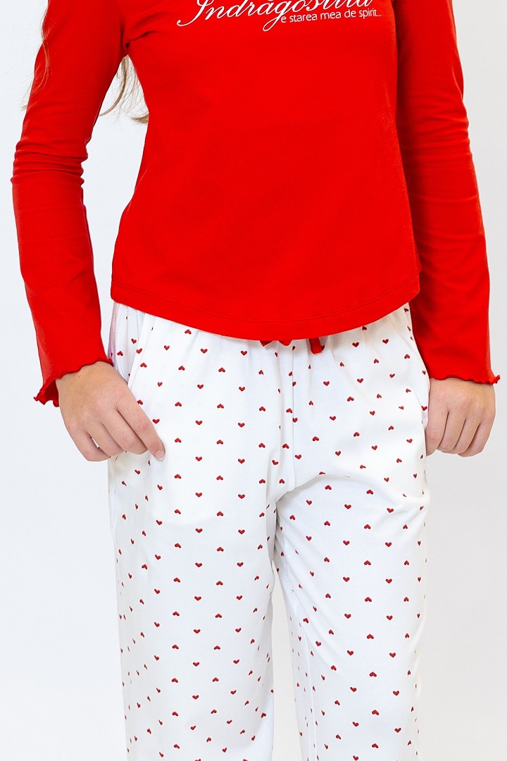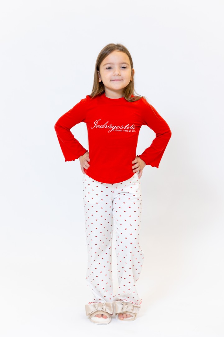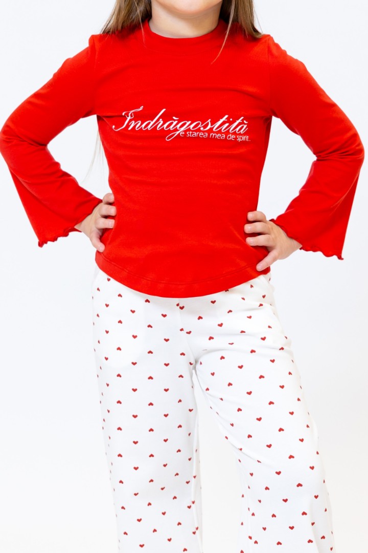 Tagaer Ajoure Pijama-pantaloni fete TF23706 Rosu- Ivory print inimi