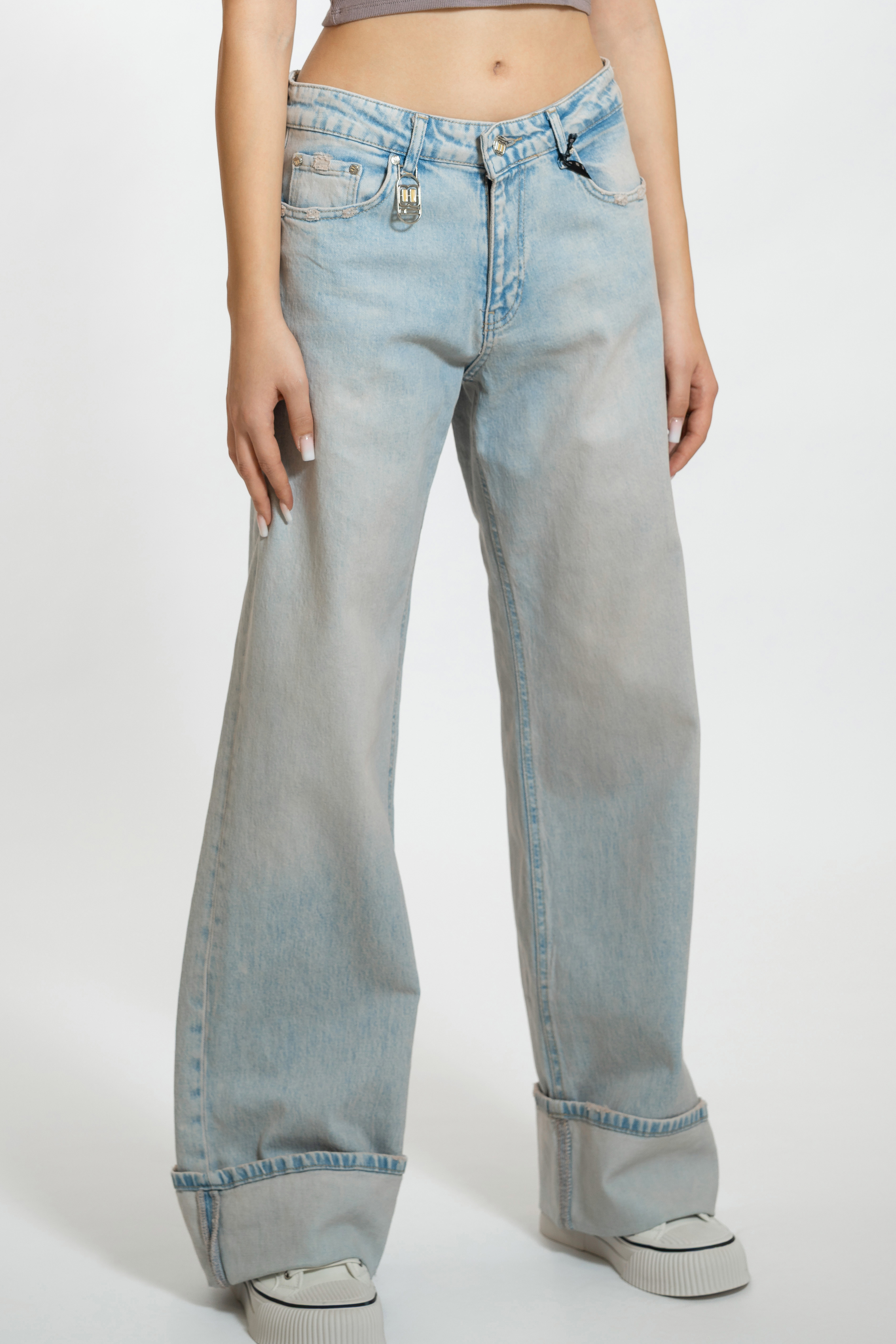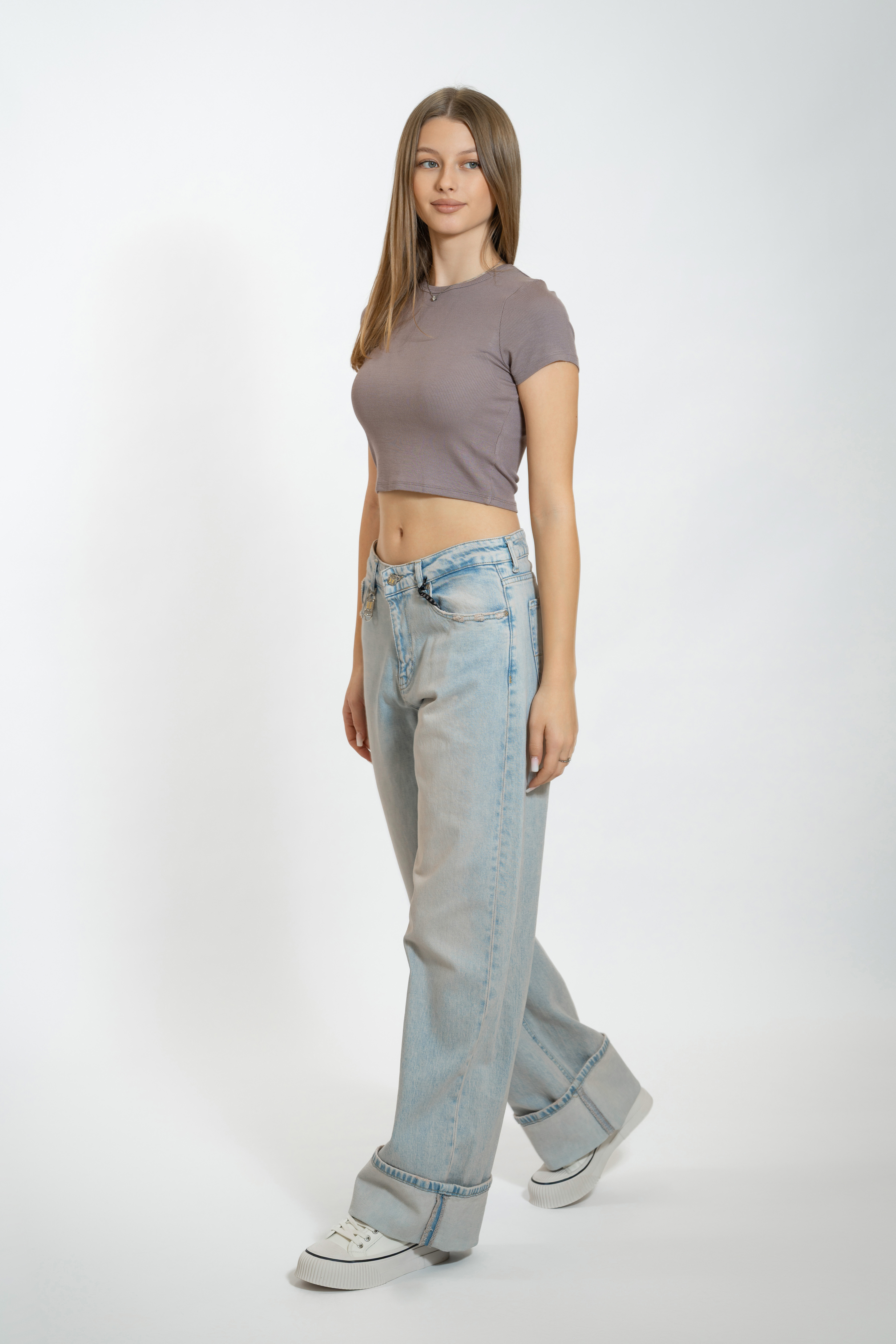 Pantaloni pentru femei din denim Wide Leg cu talie medie.