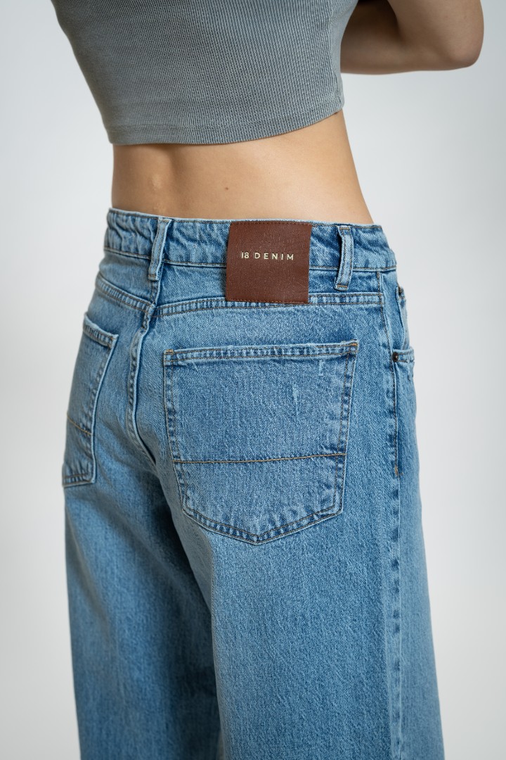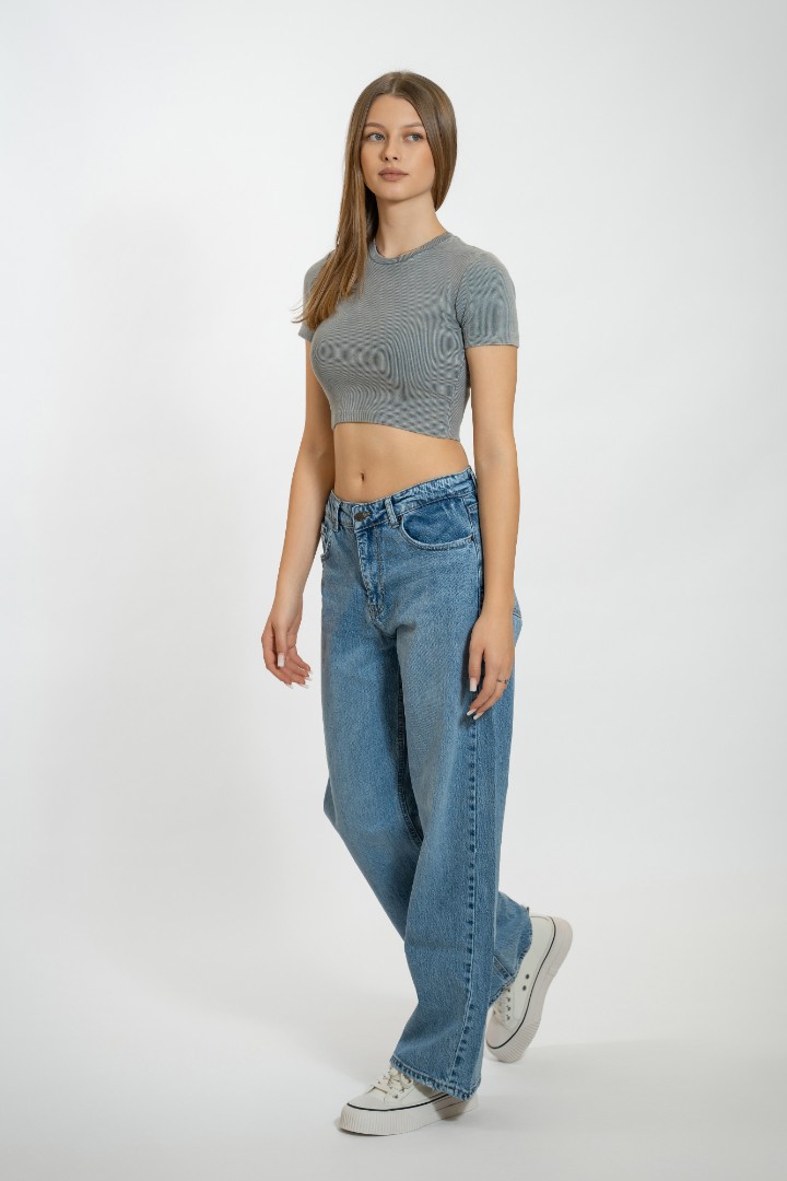 Pantaloni din denim Wide Leg cu talia înaltă pentru femei.