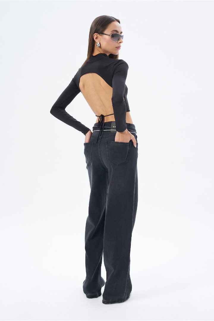 Pantaloni Baggy din denim cu talie înaltă. Croiala largă a picioarelor asigură confortul la purtare și nu restricționează libertatea mișcărilor. Datorită taliei neprecizate, se adaptează la diferite tipuri de constituție fizică și asigură o potrivire confortabilă.