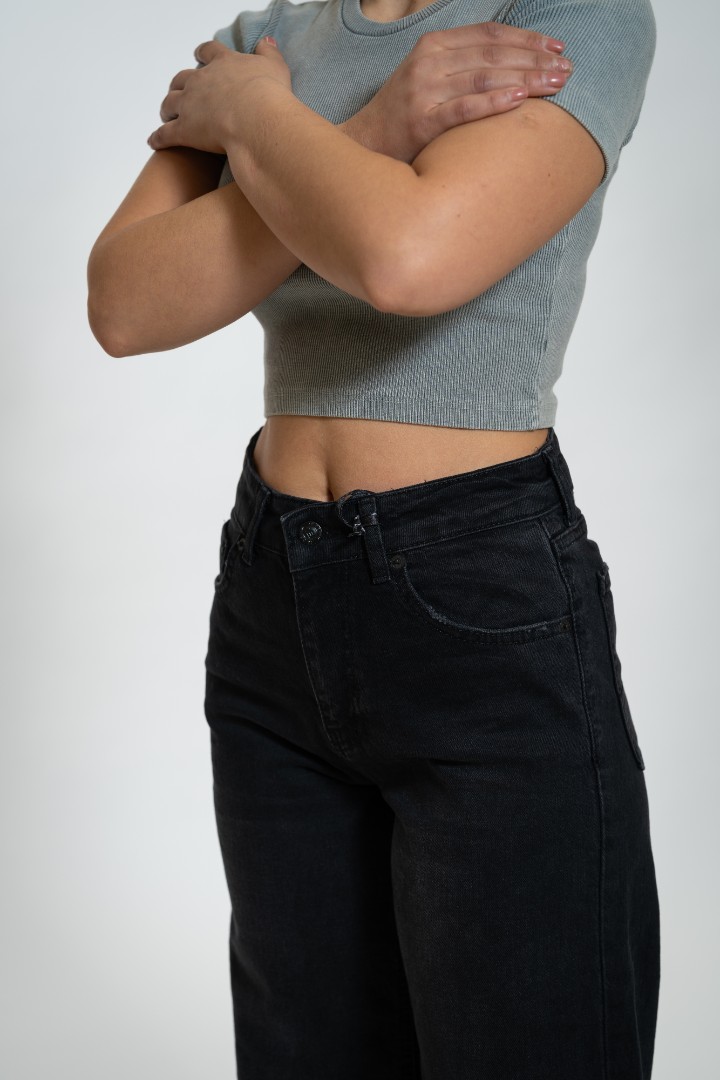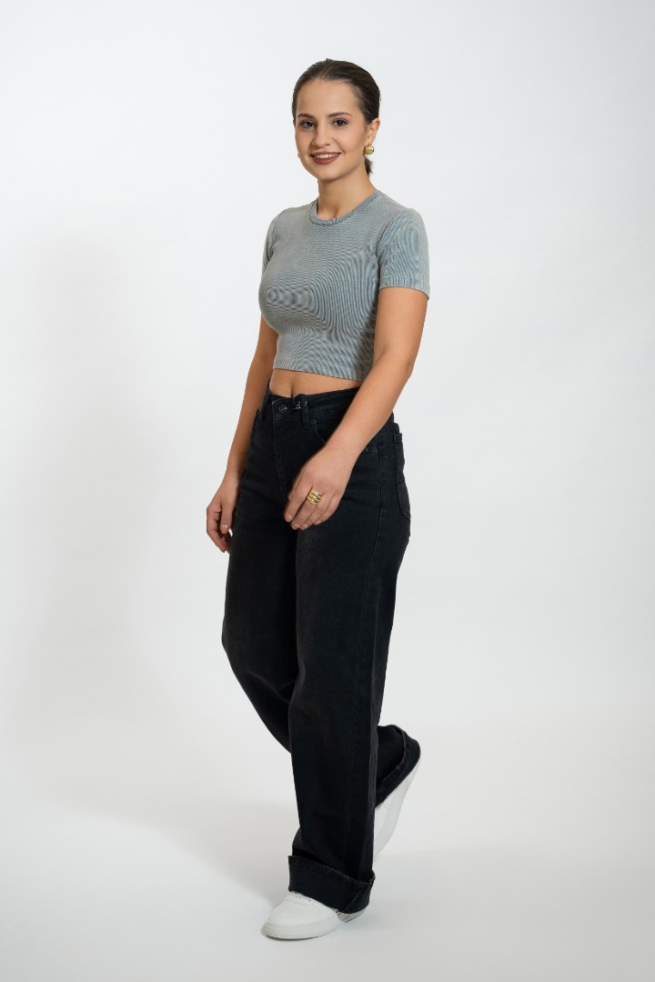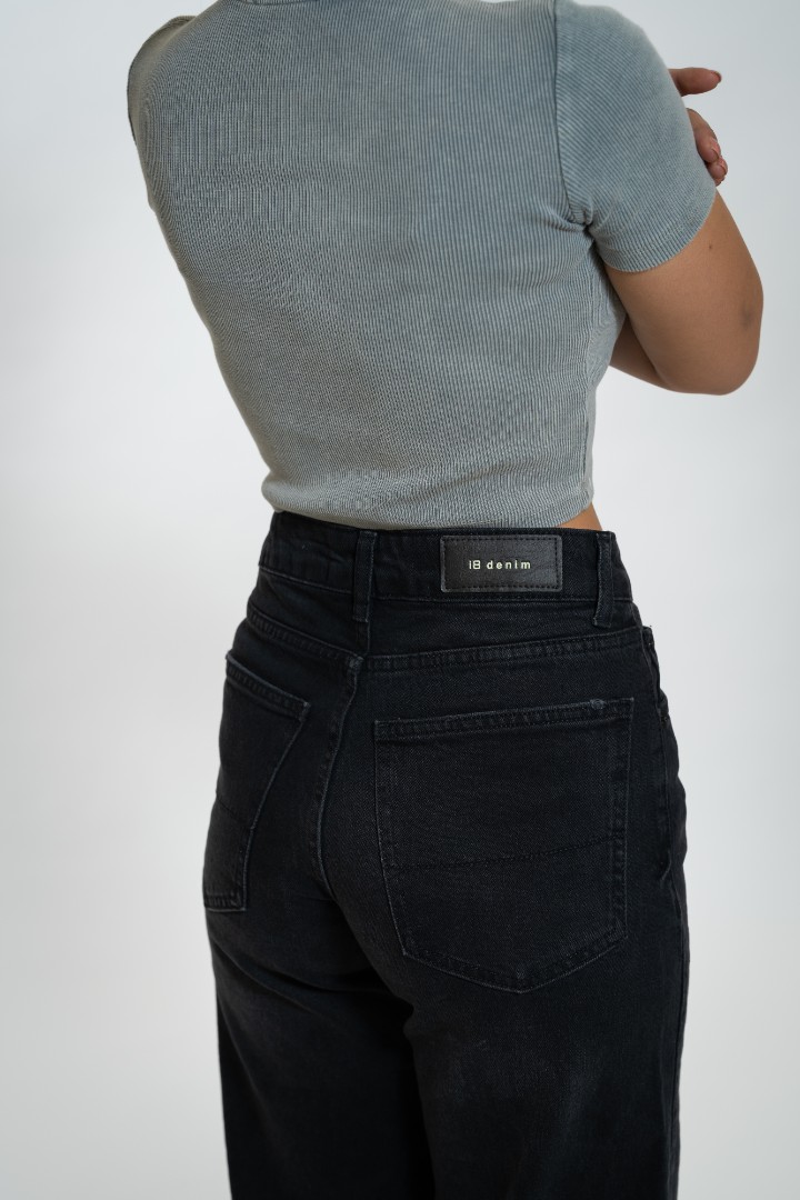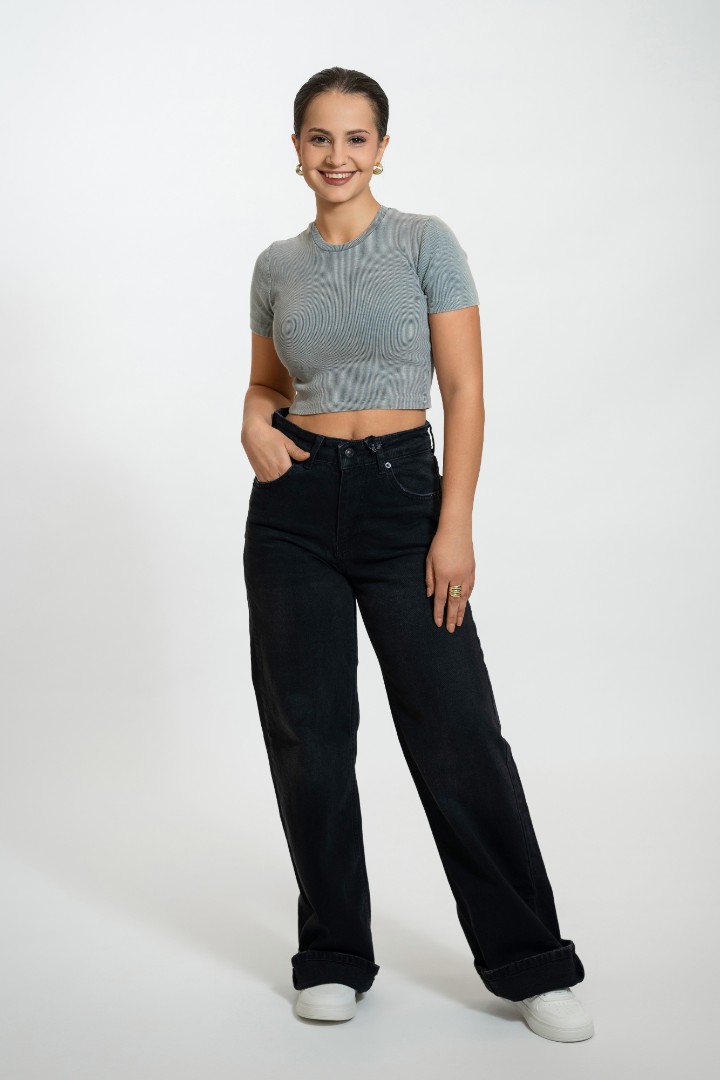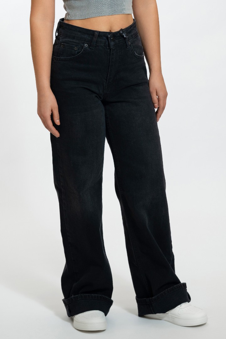 Pantaloni Wide Leg din denim cu talie înaltă.