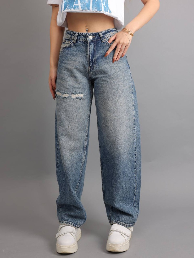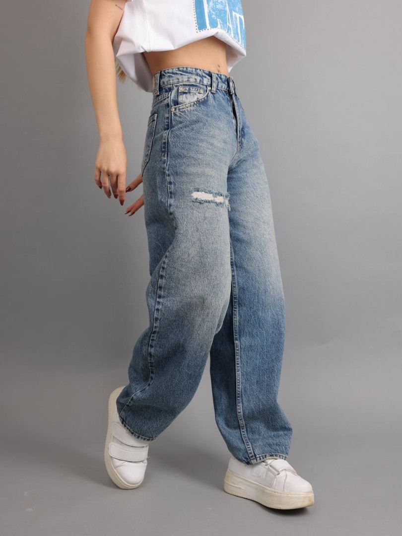 Pantaloni Skater din denim pentru femei, cu talie înaltă.