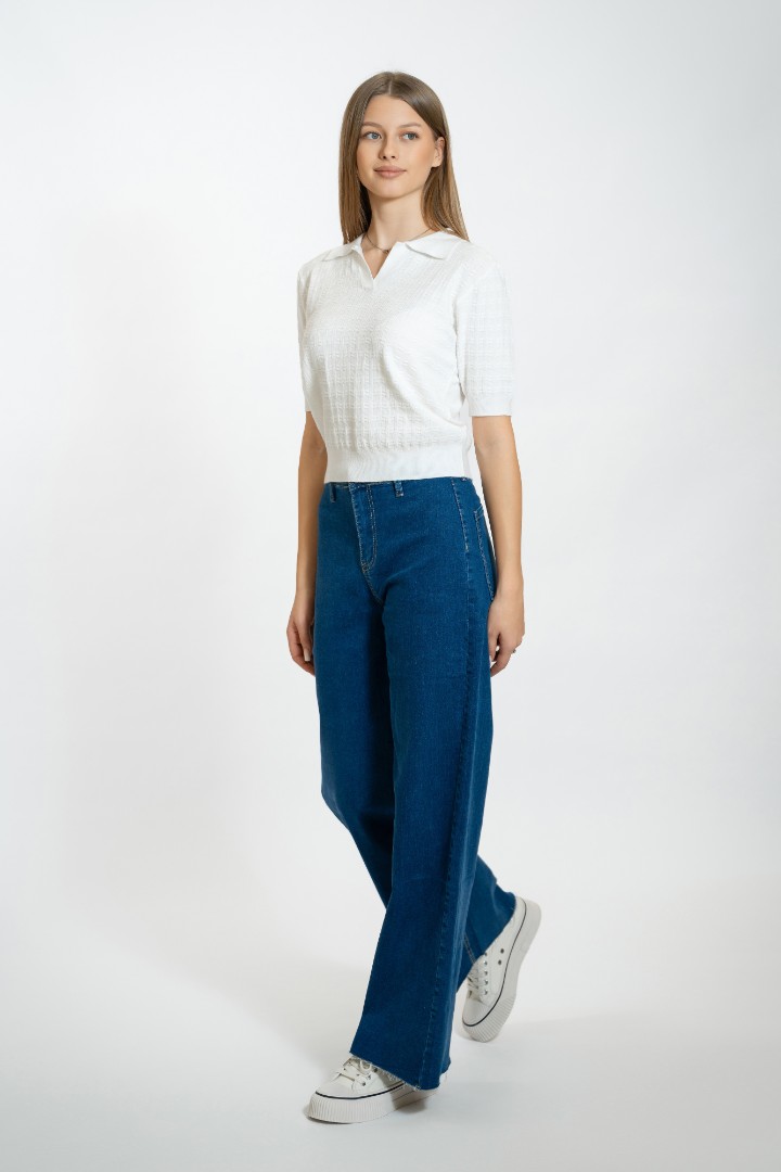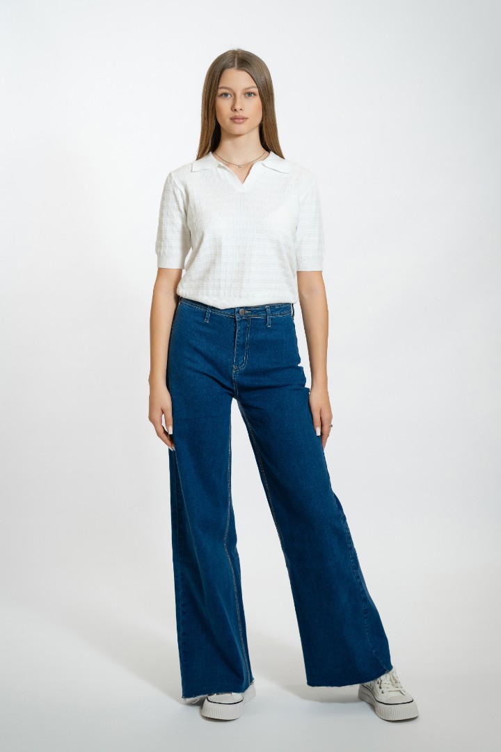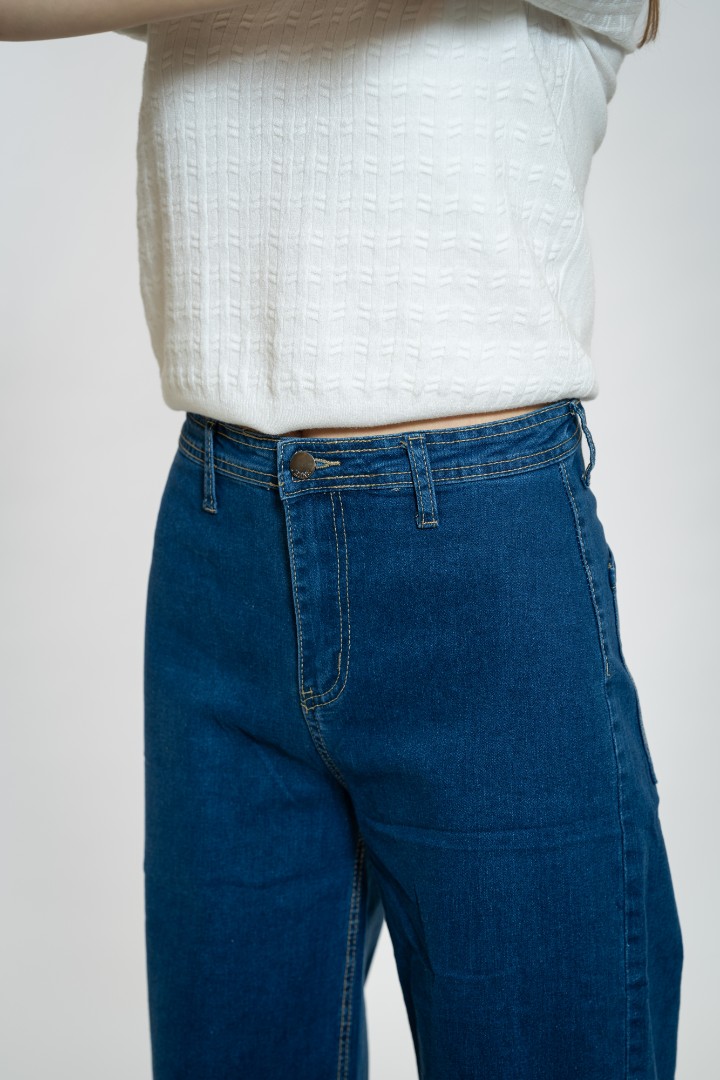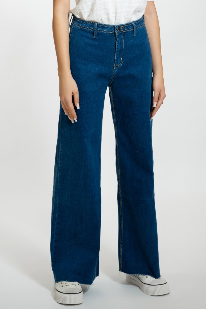 Pantaloni de blugi pentru femei cu fermoar și nasturi.
