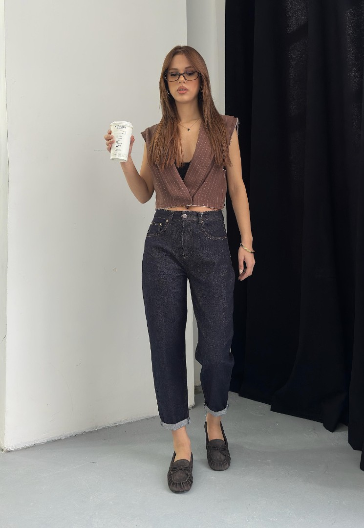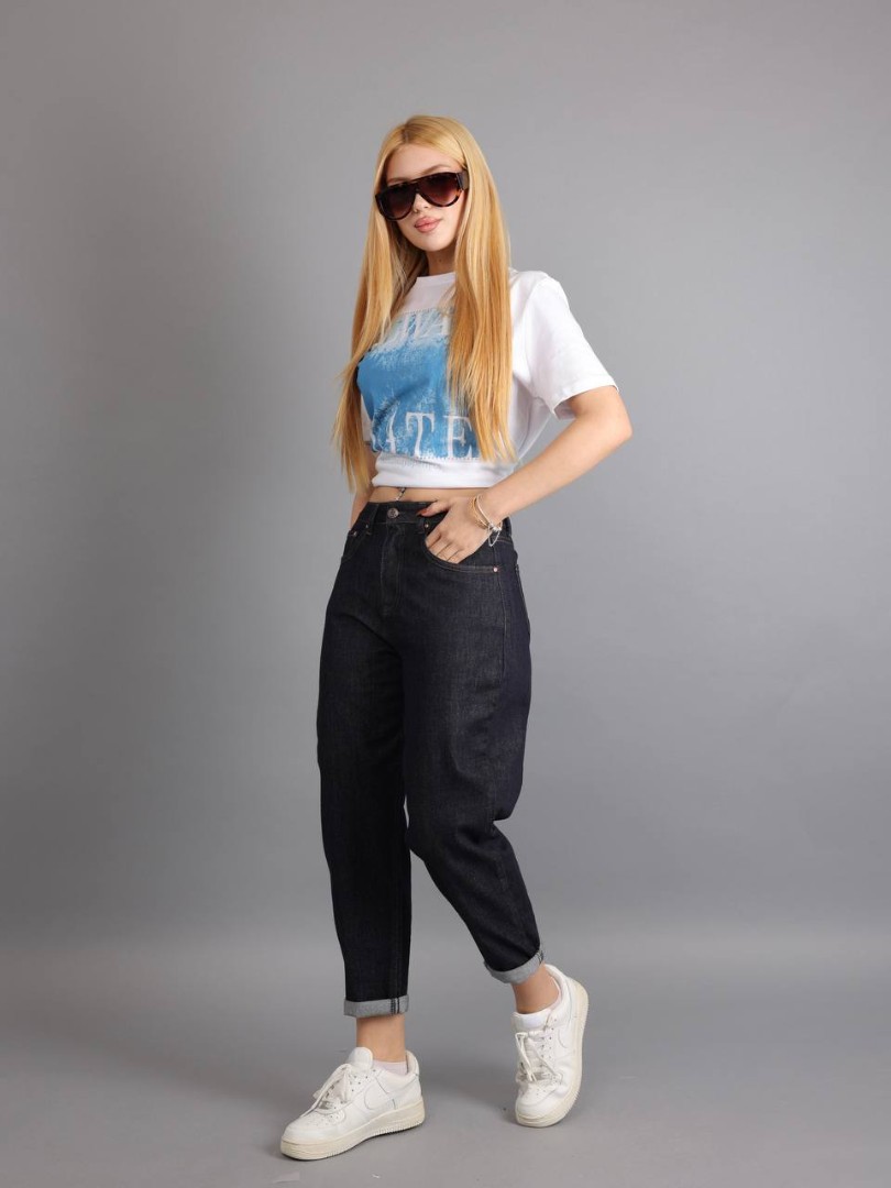 Pantaloni Mom pentru femei din denim cu talie înaltă.