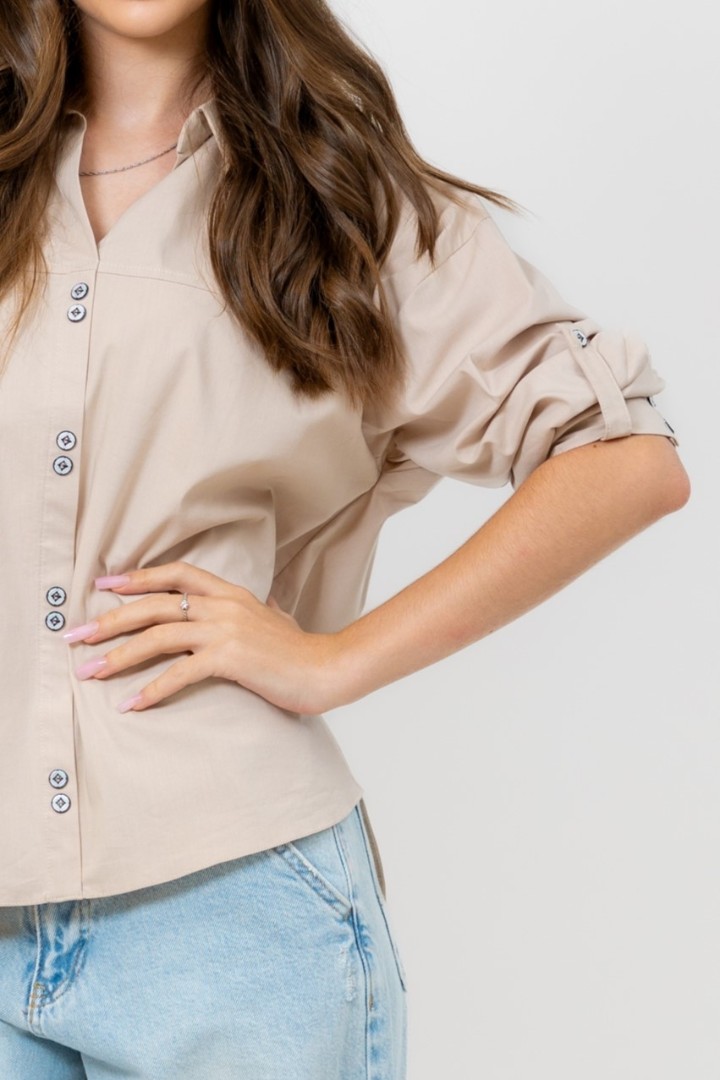 Bluză din bumbac pentru femei, cu mâneci lungi.