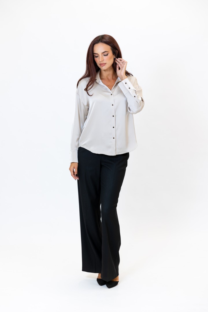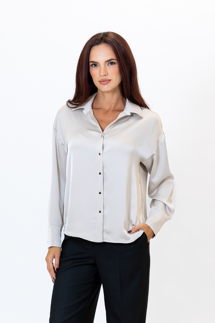 Bluza de dama cu croiala dreapta. Guler clasic și nasturi pe toata lungime.