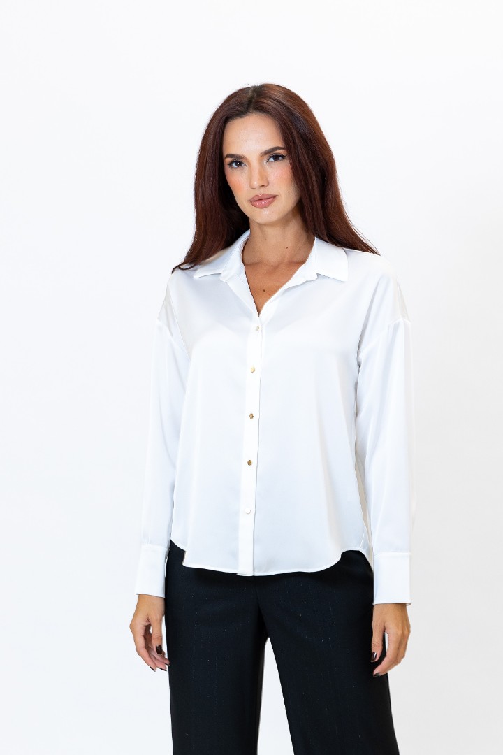 Bluza de dama cu croiala dreapta. Guler clasic și nasturi pe toata lungime.