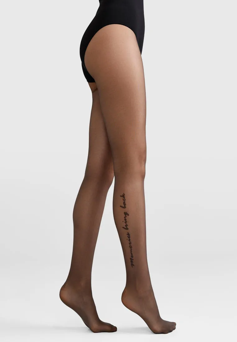Imitația tatuajului „Memories bring back” este aplicată pe un singur picior - acest design ajută la adăugarea unui accent delicat la aspectul dvs. personalizat. Datorită firului dublu împletit, vă veți simți confortabil purtând dresurile toată ziua. Împletitură dublă: o tehnologie specială de fabricare a firelor în care firul de poliamidă este împletit de două ori. Acest lucru face țesătura mai elastică și mătăsoasă la atingere. Acest lucru face ca țesătura să fie mai elastică și mai mătăsoasă la atingere. - 30 den - subțire și elastic - imitație de tatuaj „Memories bring back” - potrivire perfectă - cusătură plată - pavă din bumbac - șosetă întărită - concepute pentru a vă completa ținutele unice