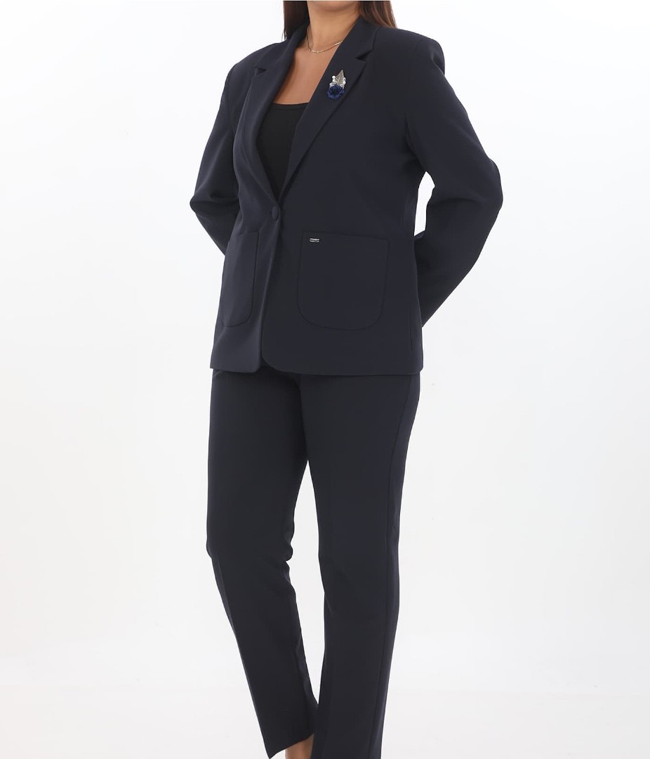Costum feminin din doi piese. Compus din sacou și pantaloni.