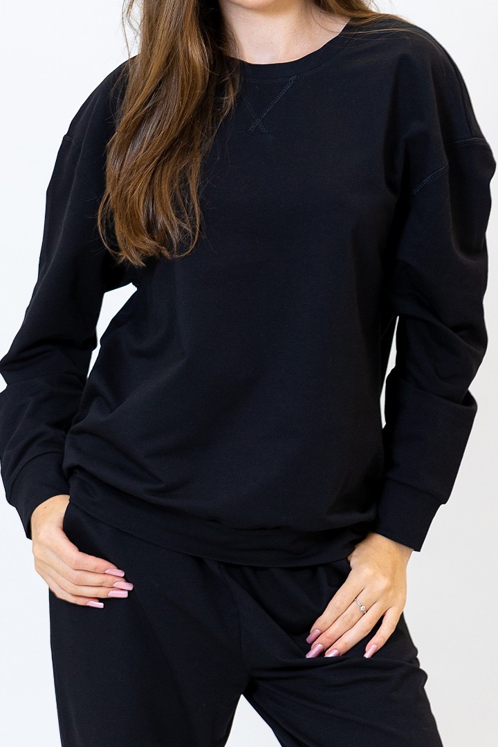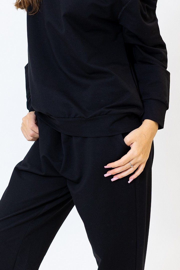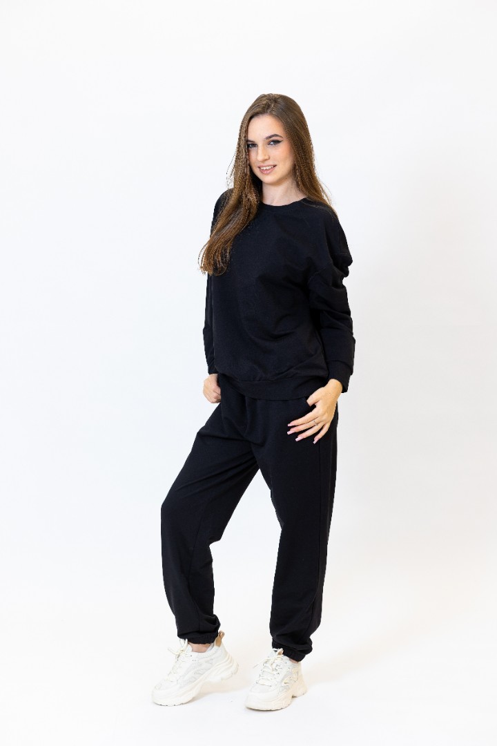 Costumul cu pantaloni pentru femei este format dintr-un tricou cu mânecă lungă și pantaloni. Pantalonii au talie elastică și buzunare laterale.