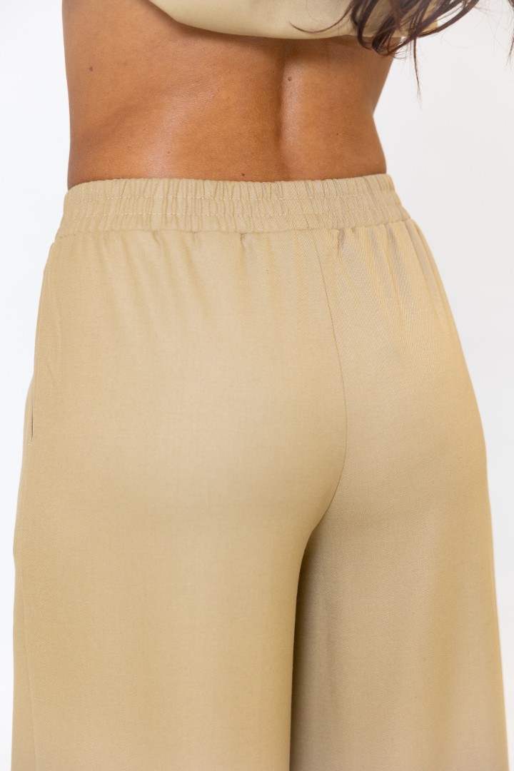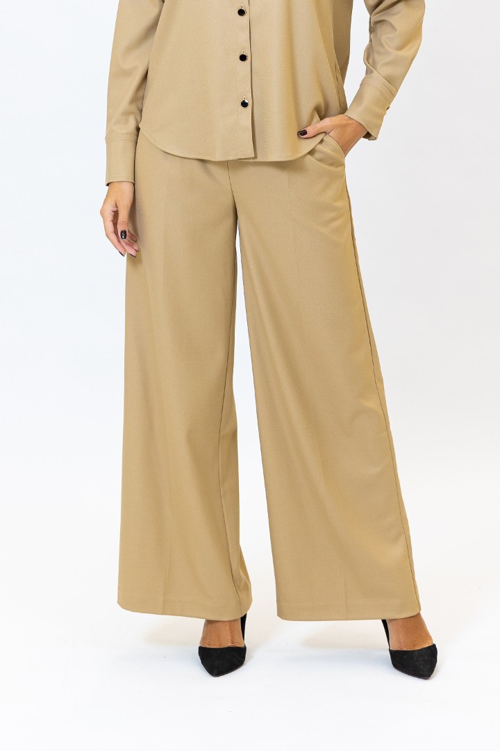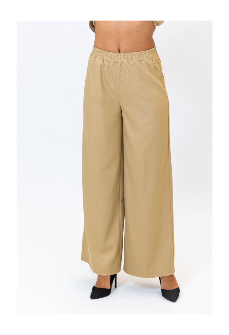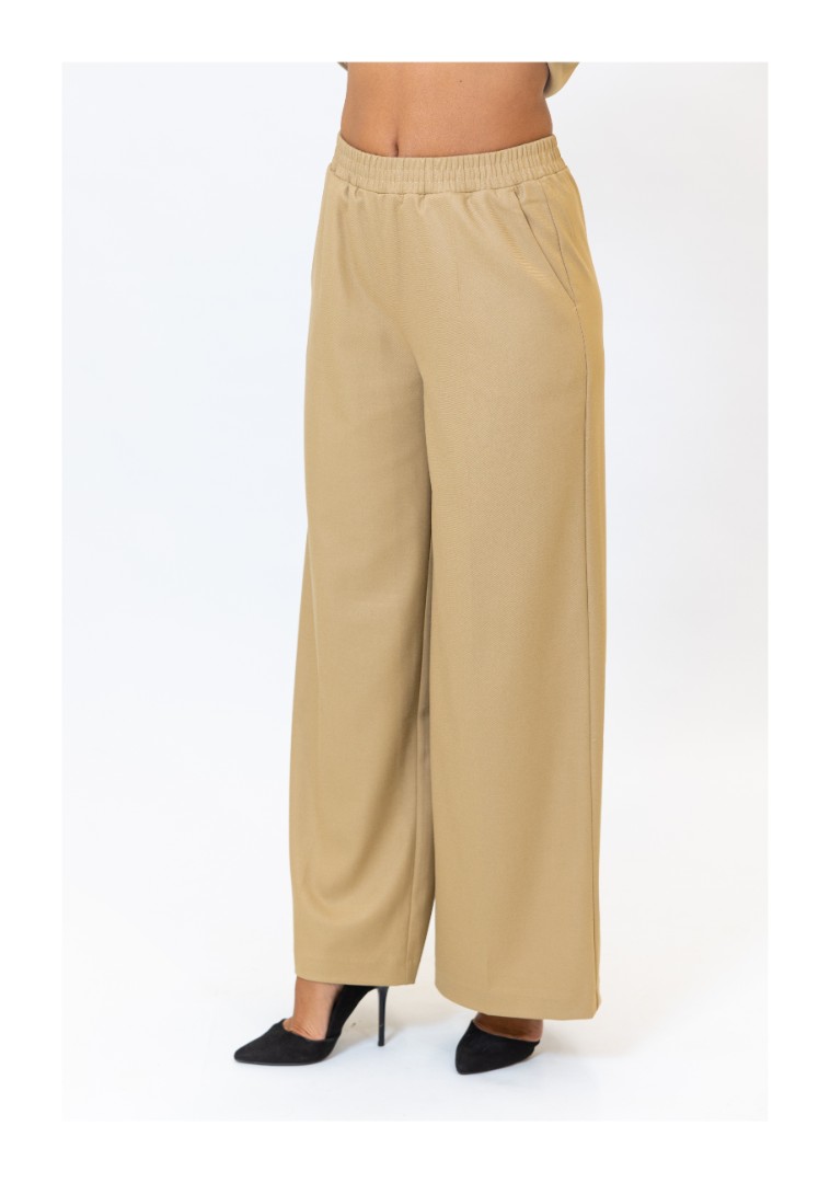 Pantaloni largi pentru femei, cu talie elastică și buzunare laterale.