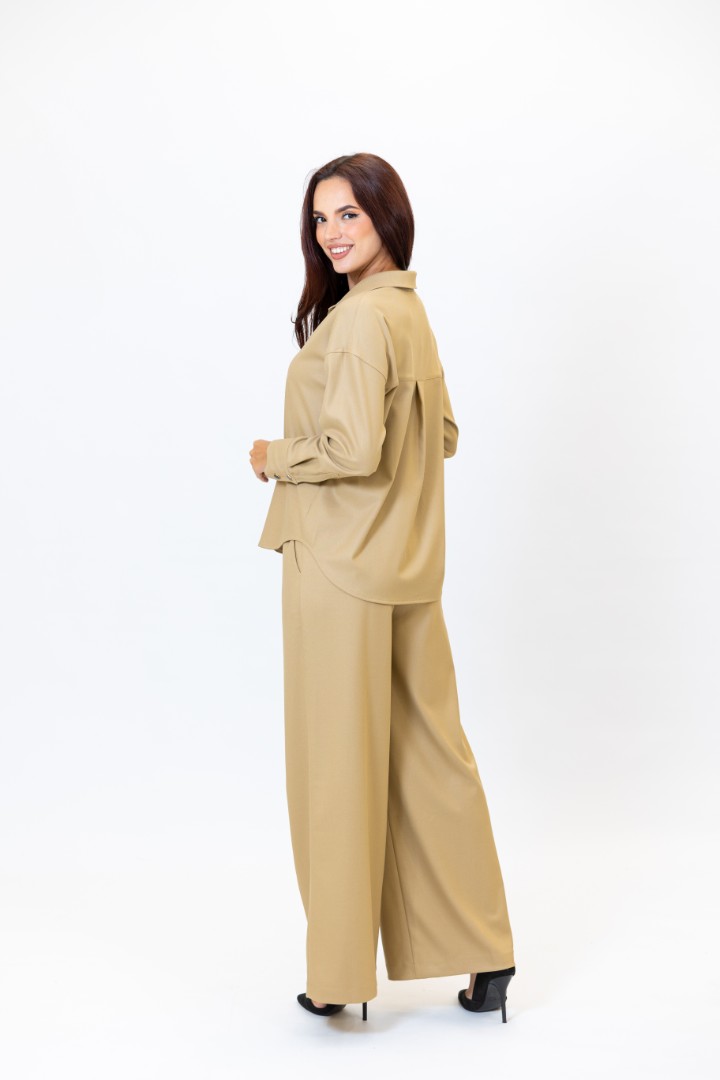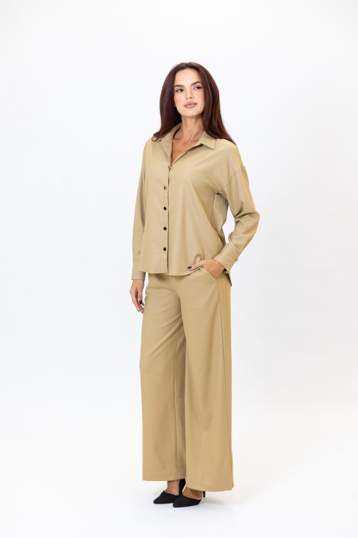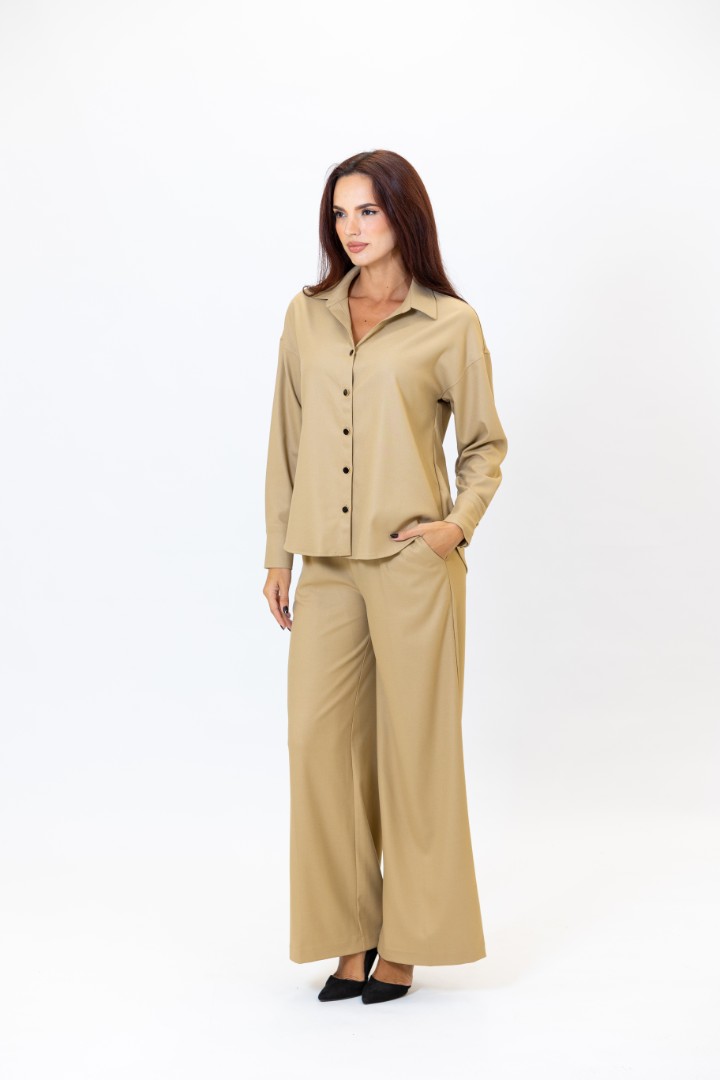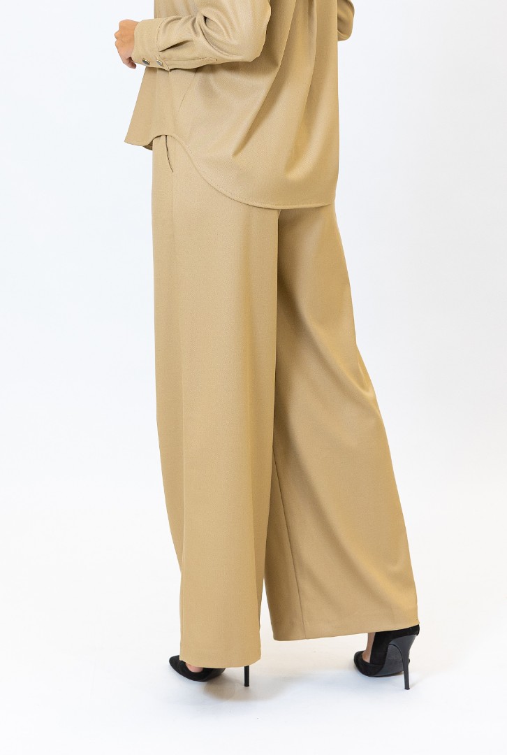 Pantaloni largi pentru femei, cu talie elastică și buzunare laterale.