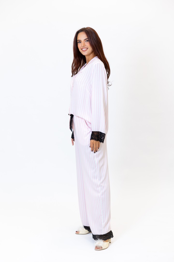 Ajoure Pijama-pantaloni dame C23681 Roz-print dungi