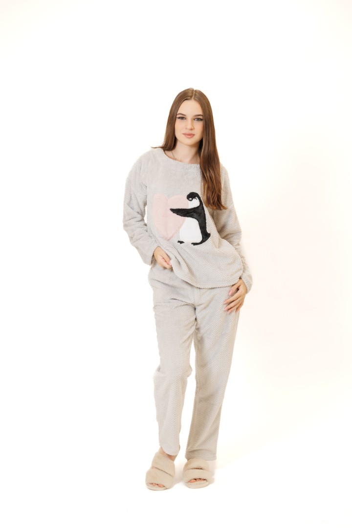 Costum de casă. Este compus dintr-un pulover cu mânecă lungă și pantaloni lungi.