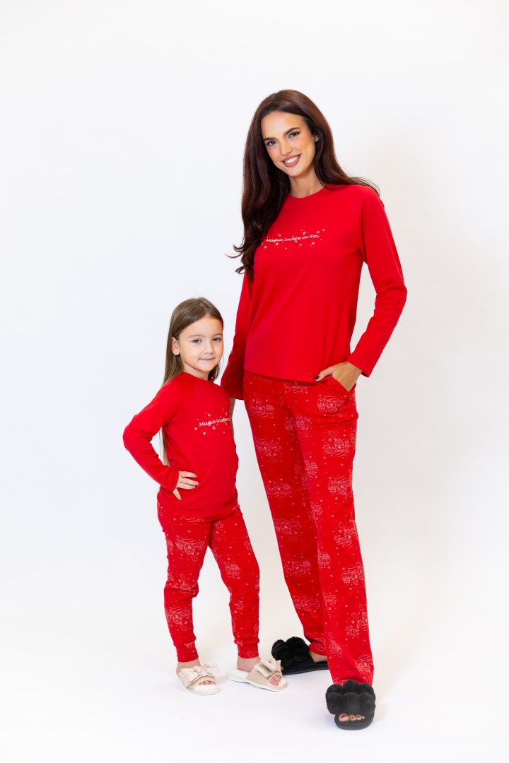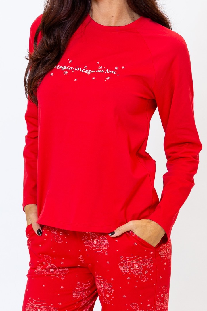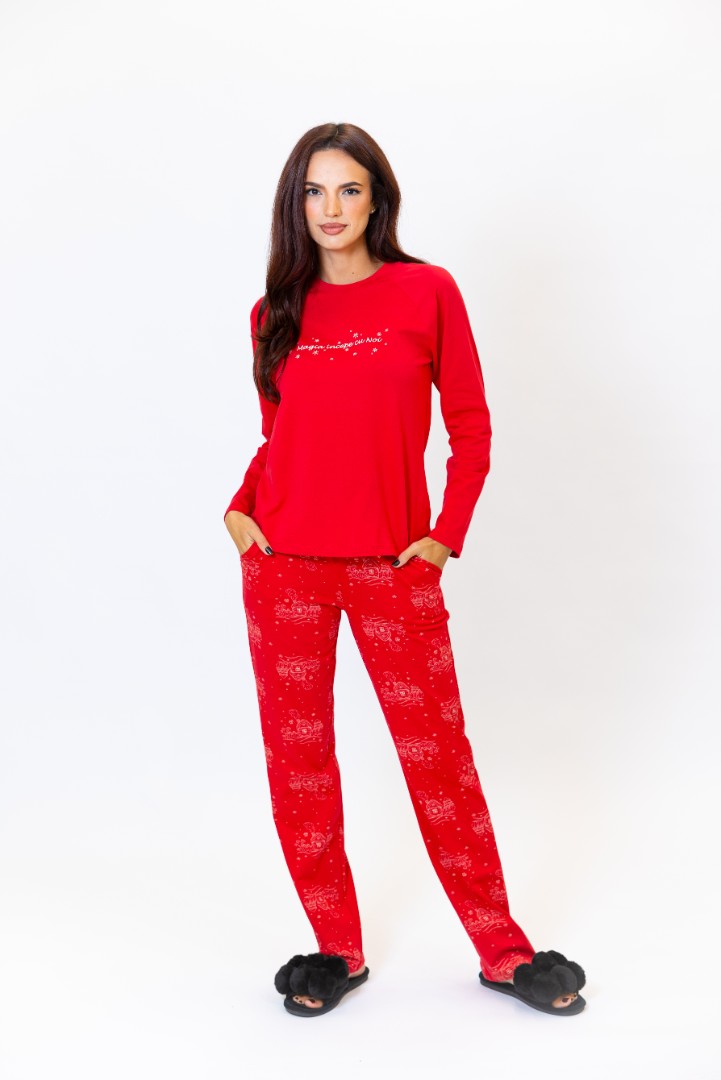 Ajoure Pijama-pantaloni dame T23679/1 Rosu-print casuta