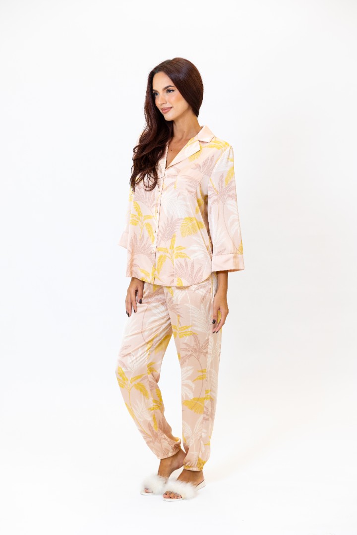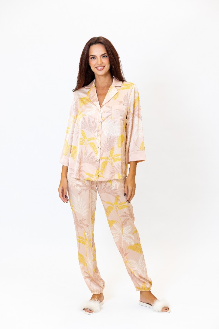 Ajoure Pijama-pantaloni M23550 Bej-print palima