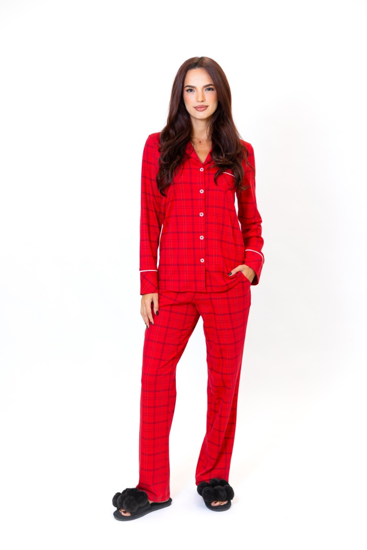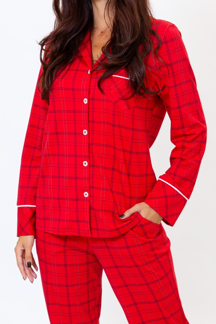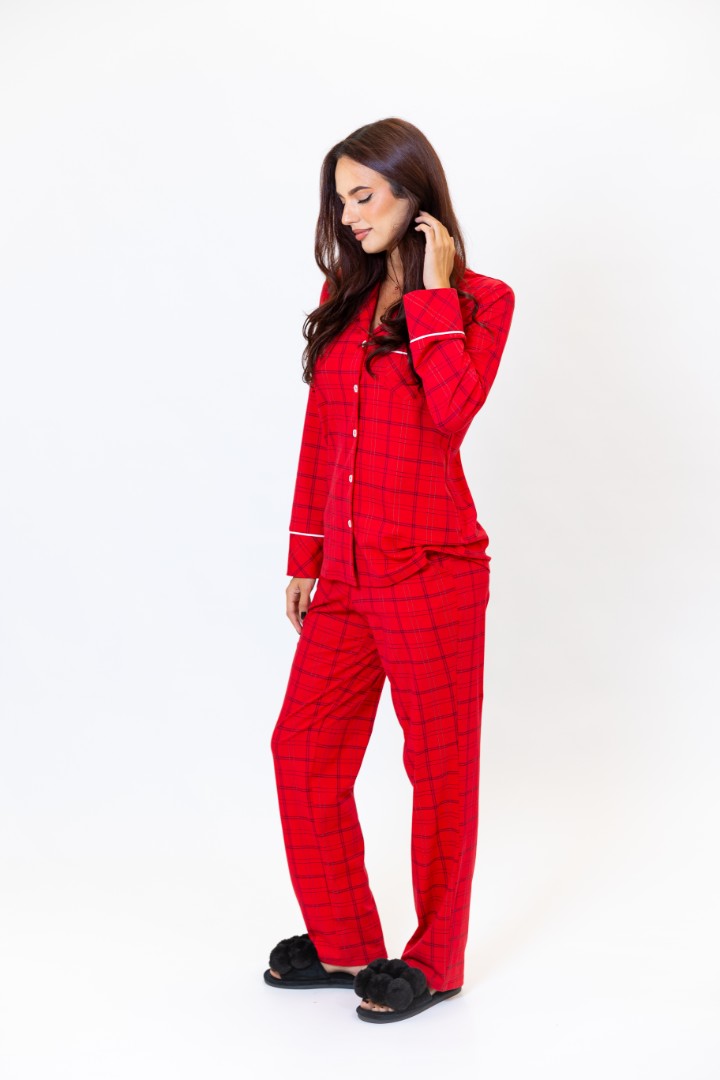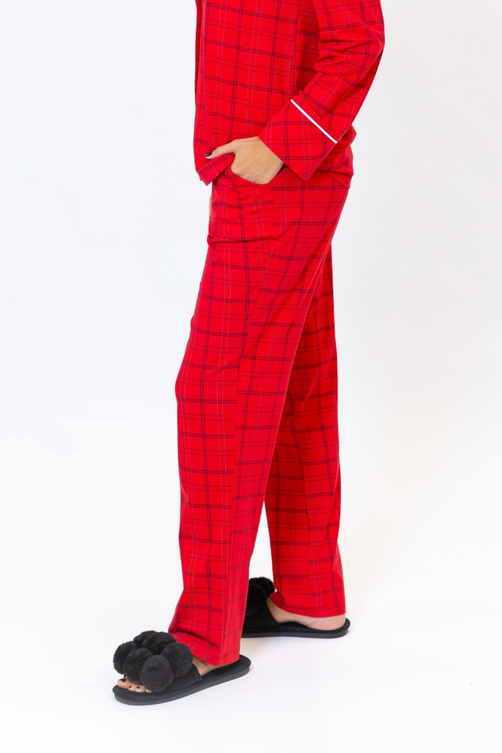 Tagaer Ajoure Pijama-pantaloni T23801 Rosu print carouri