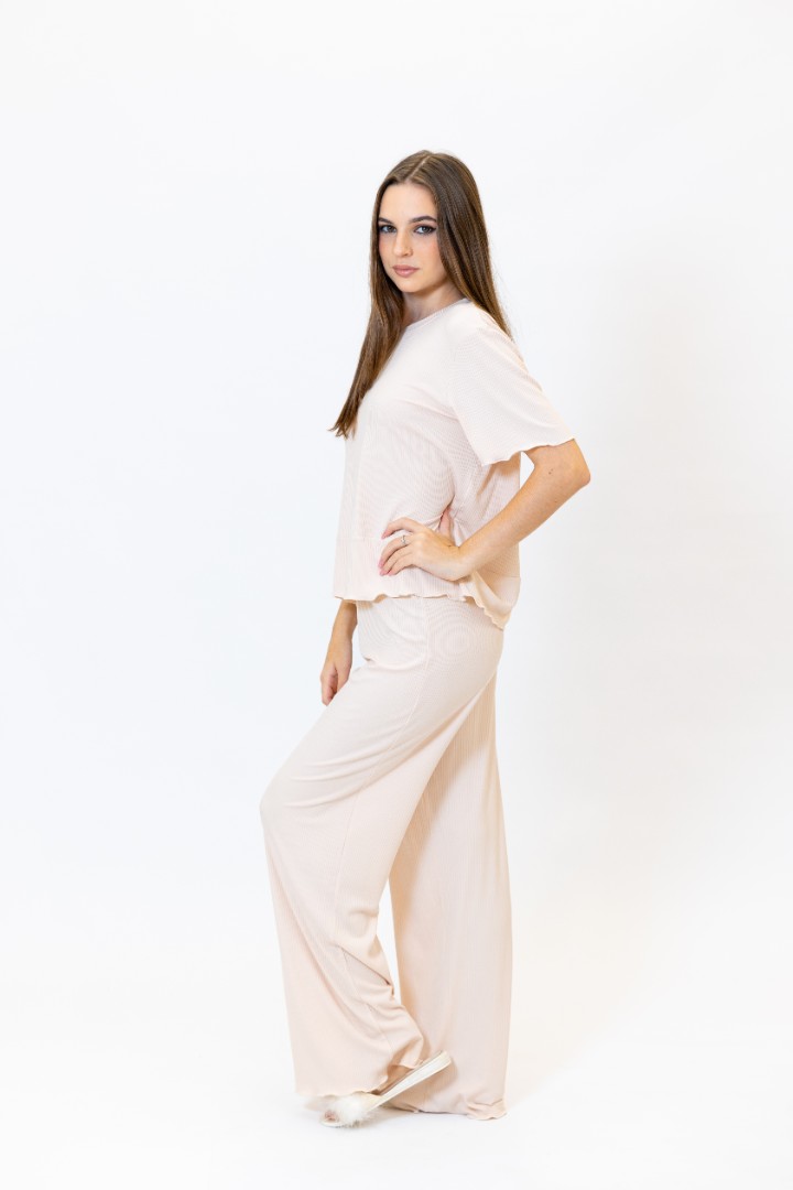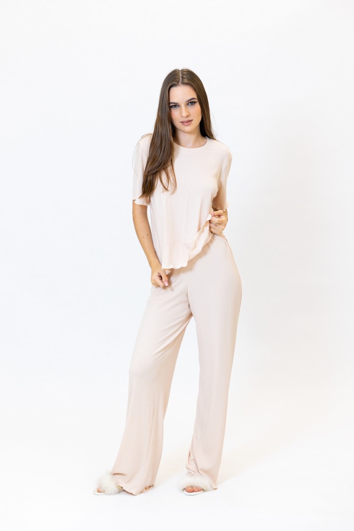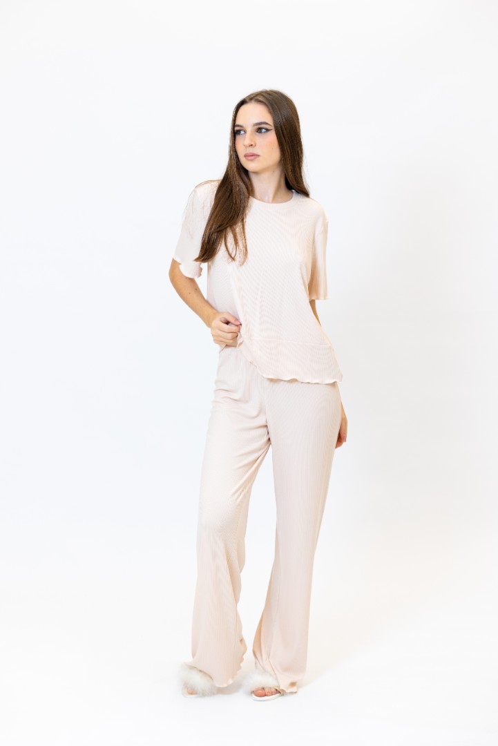 Pijama pentru femei, compusă din tricou și pantaloni.