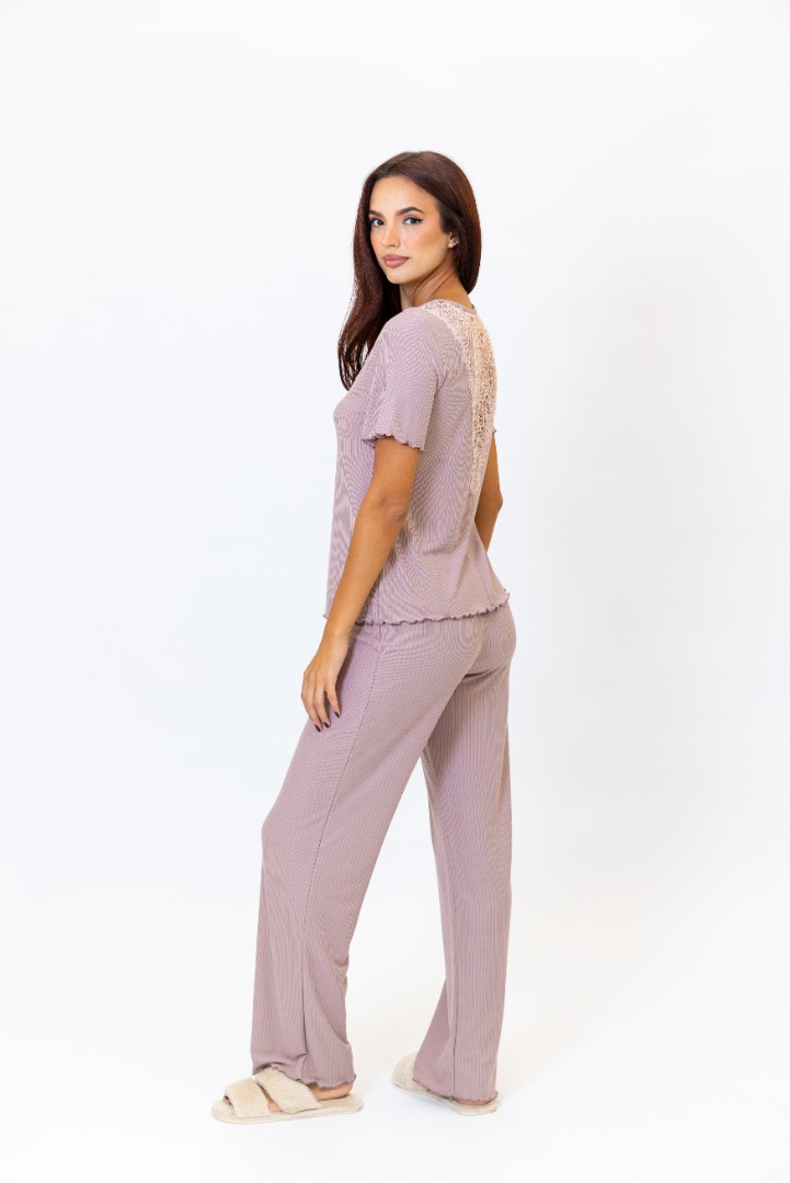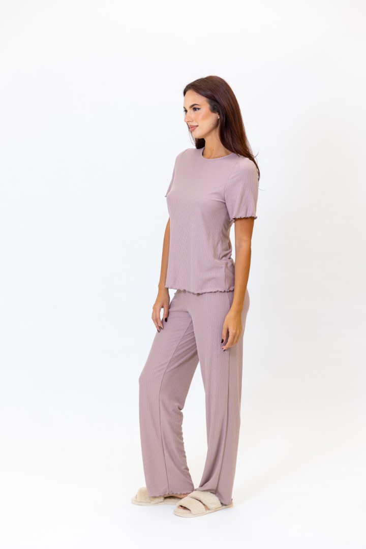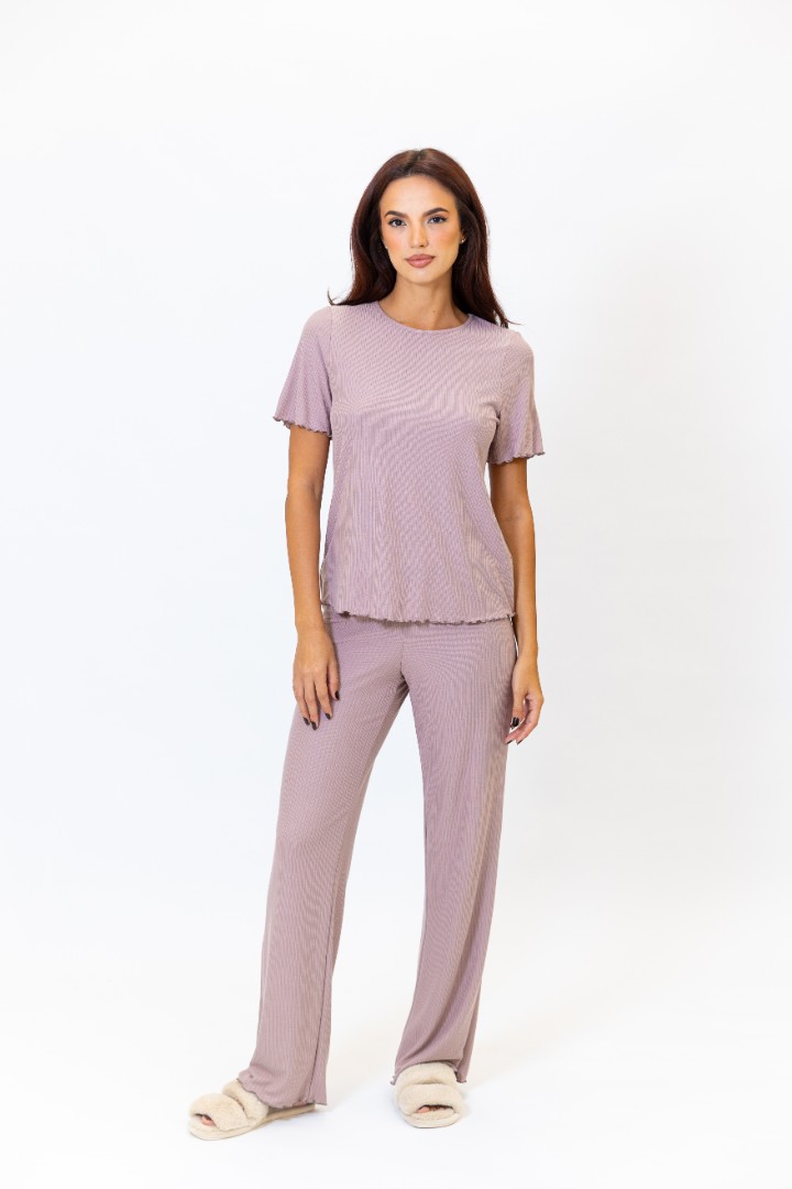 Pijamaua pentru femei constă dintr-un tricou și pantaloni.