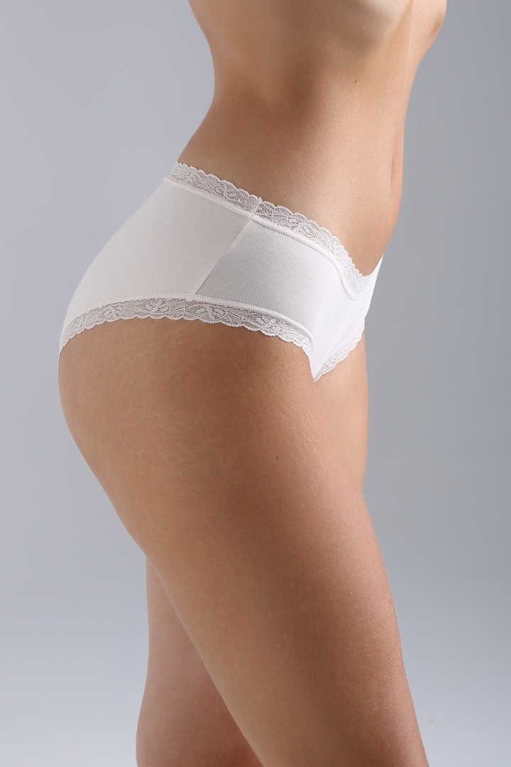 Chiloți tip slip (hipster) cu talie medie. Părțile laterale largi pun în evidență linia șoldurilor, iar detaliul din spate dezvăluie seducător jumătate din fese. Chiloții sunt confecționați din țesătură de bumbac de înaltă calitate.