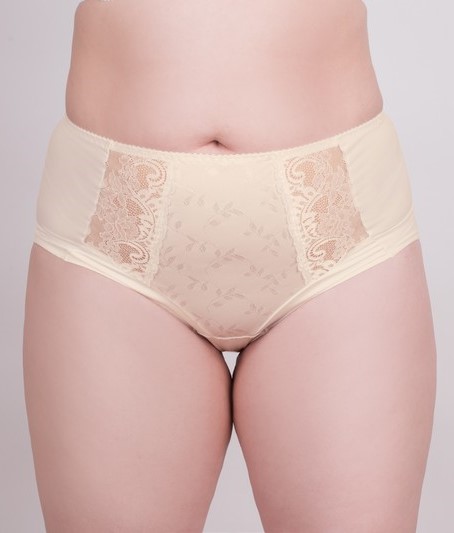 Chiloti slip din material elastic, tesatura elastica jacquard si dantela elastica. Talie inalta. Sectiunile inferioare sunt realizate in tiv.