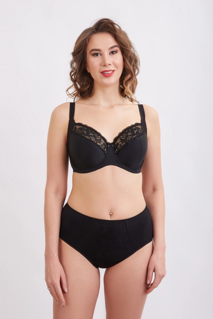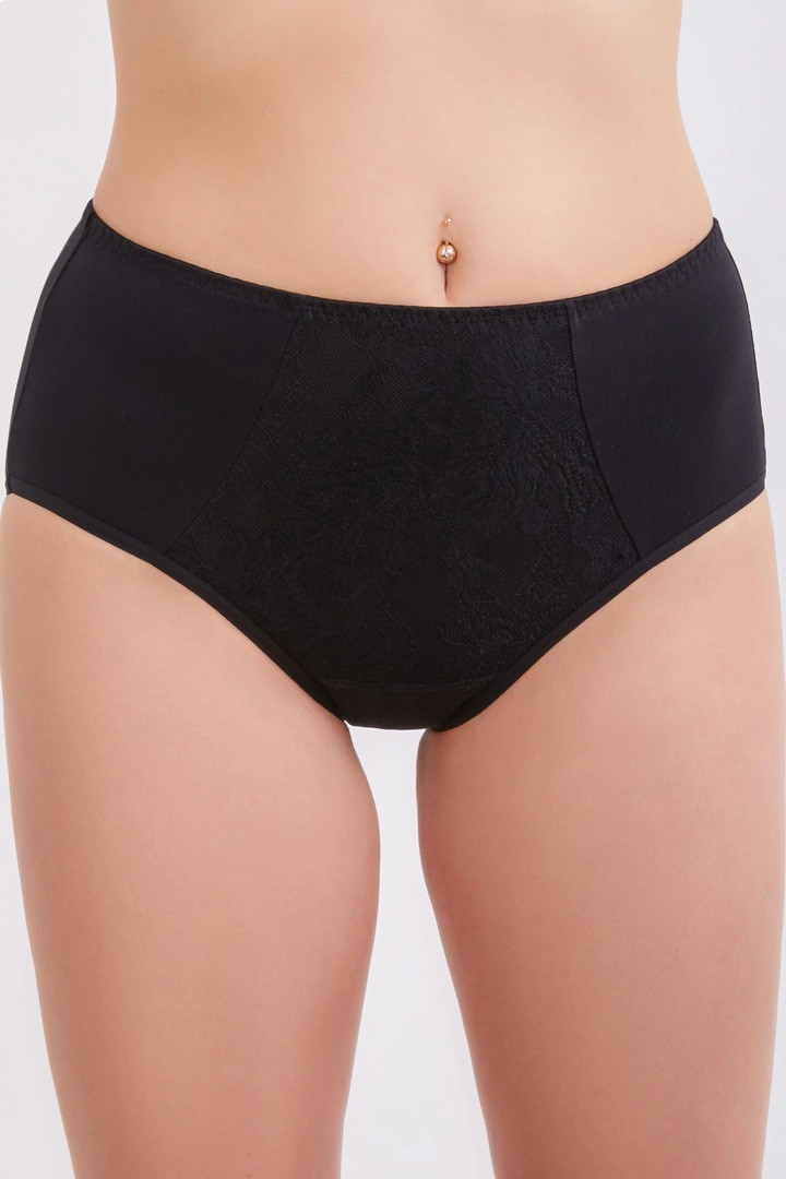 Slip clasic cu talie inalta. Din jerseu de bumbac elastic si dantela non-stretch. Pava din bumbac.